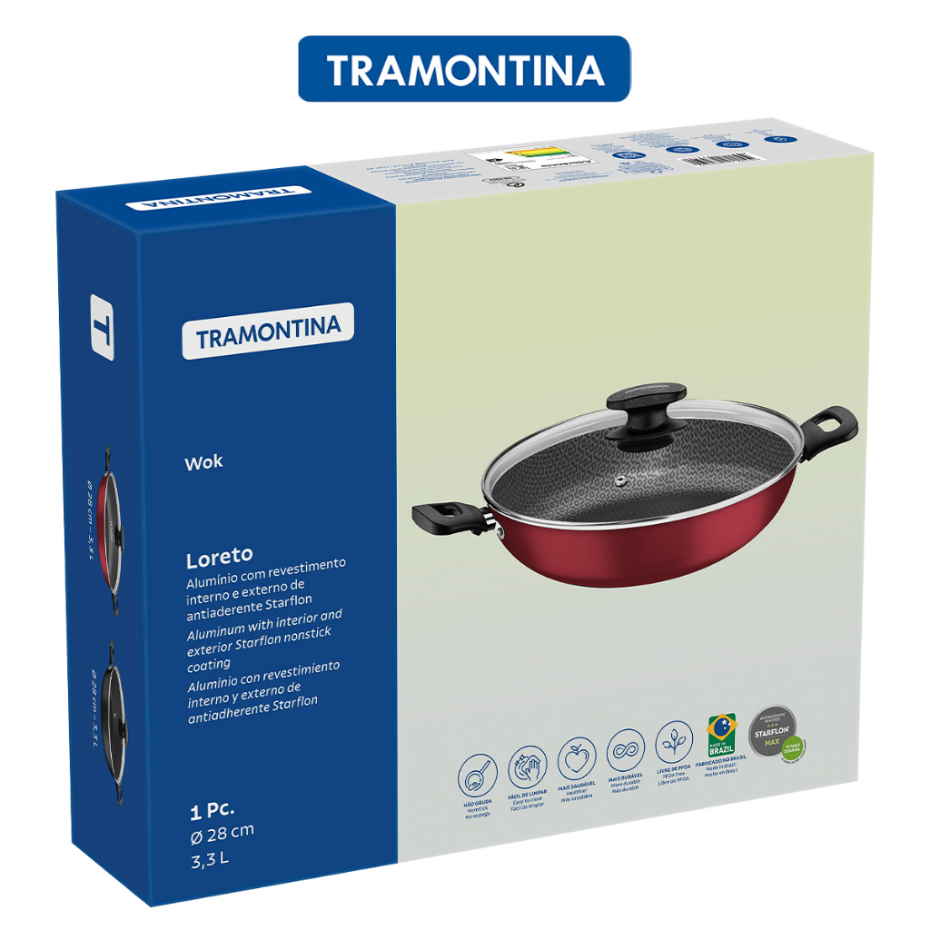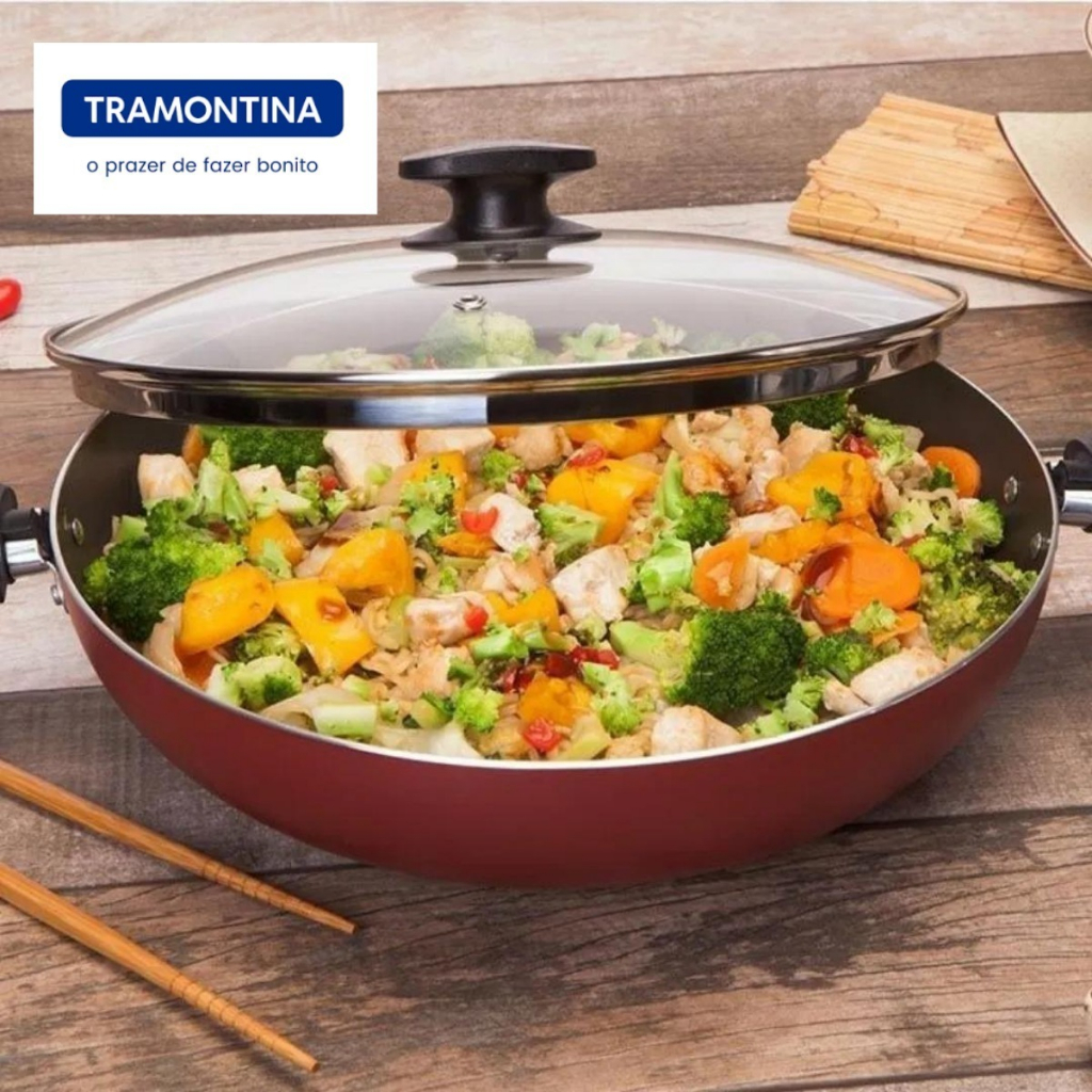 Panela Wok antiaderente 3.3l Tampa de vidro 28 cm Tramontina