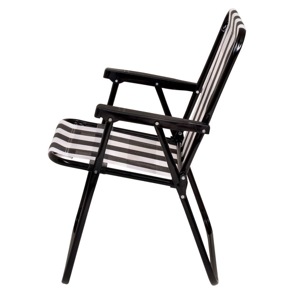 Conjunto Com 3 Cadeiras De Praia Alta De Aço Mor Retrô Preto