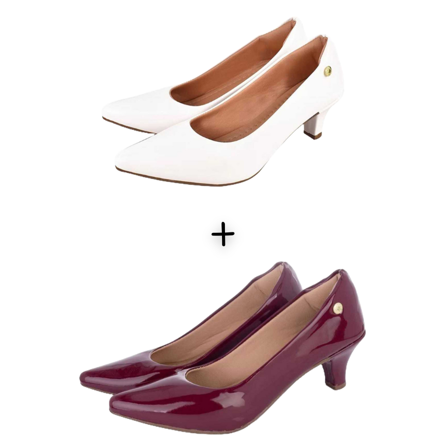 Kit Clássico 2 Sapato Scarpin Feminino Bico Fino Salto Fino Baixo Verniz Elegante Casual Social