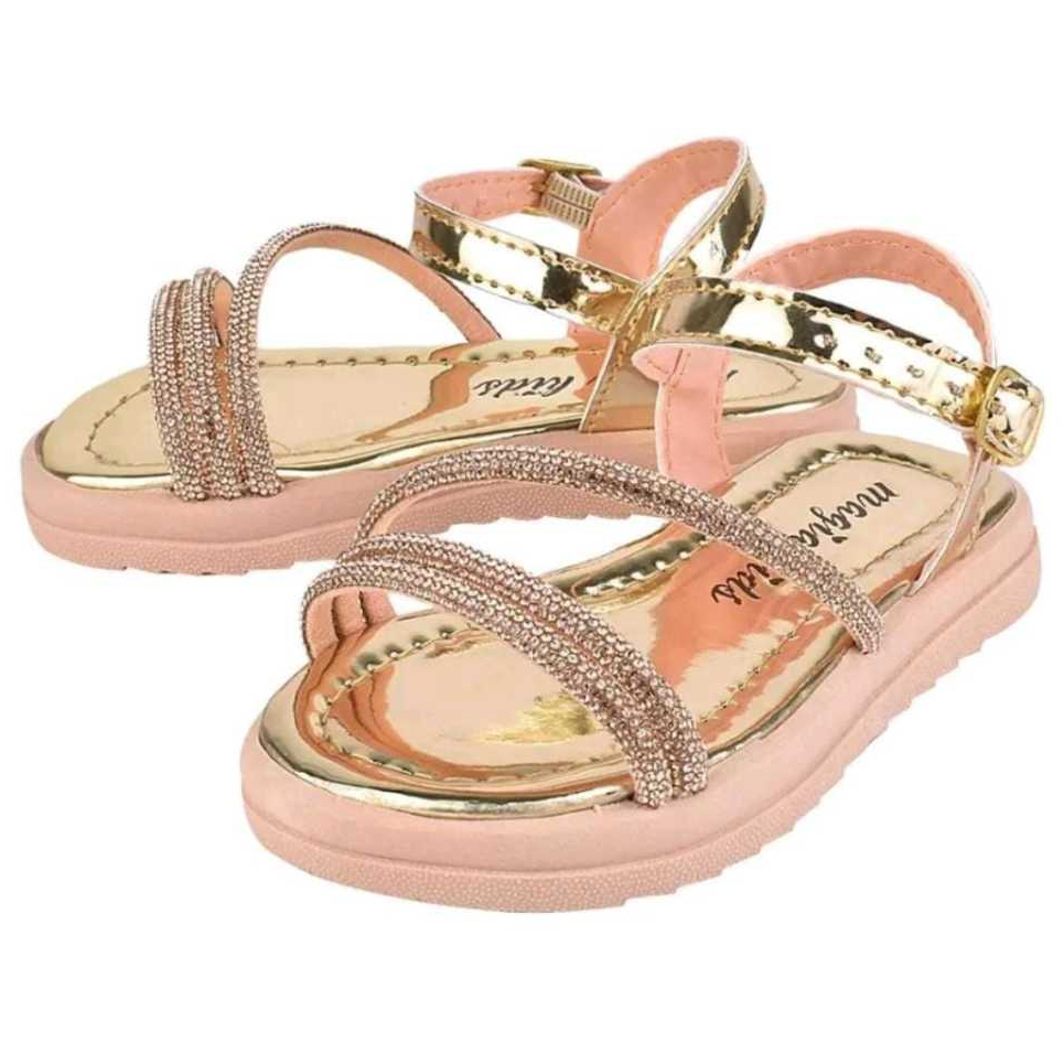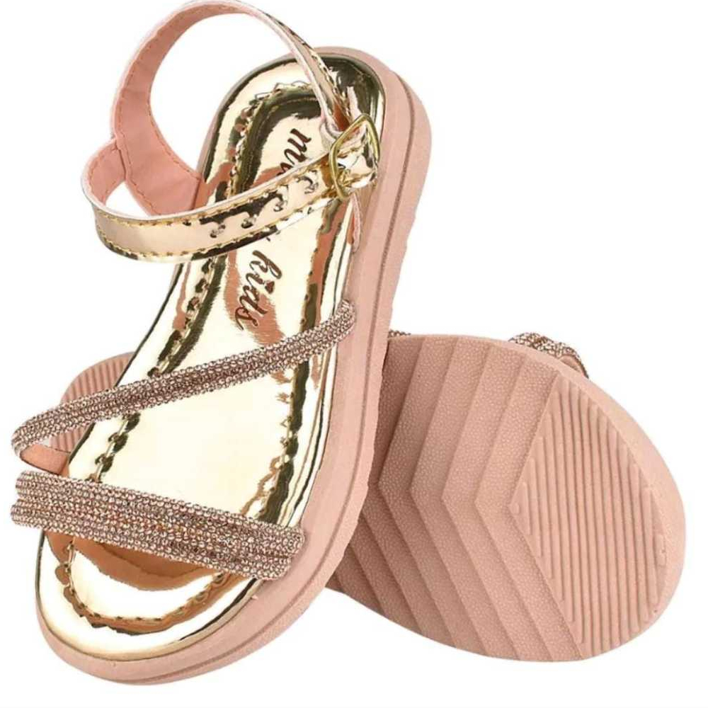 Sandália Infantil Menina Brilho Com Tiras De Strass Delicada Leve Confortável Antiderrapante Fivela