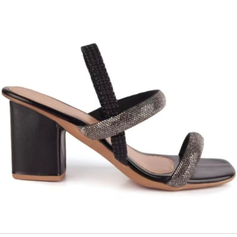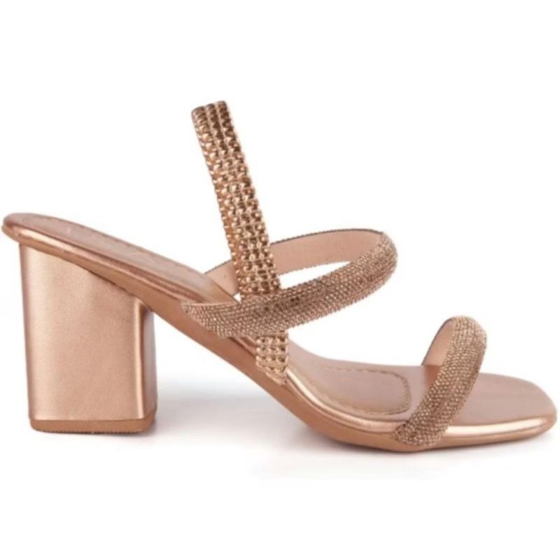 Sandália Feminina Salto Bloco Confortável Macia Festa Moda Com Elástico Calce Fácil Com Strass