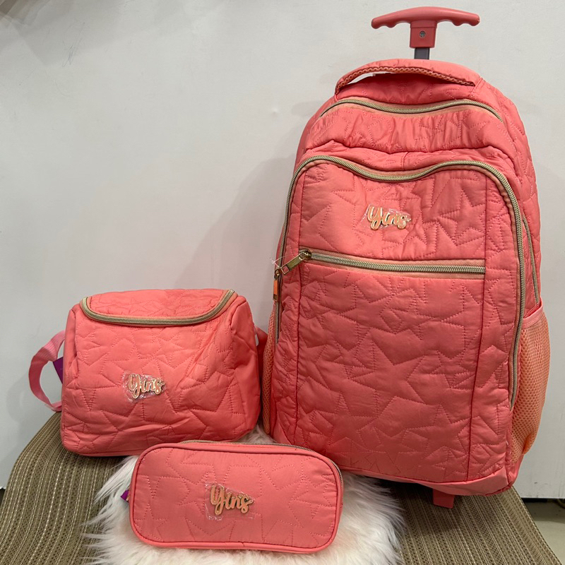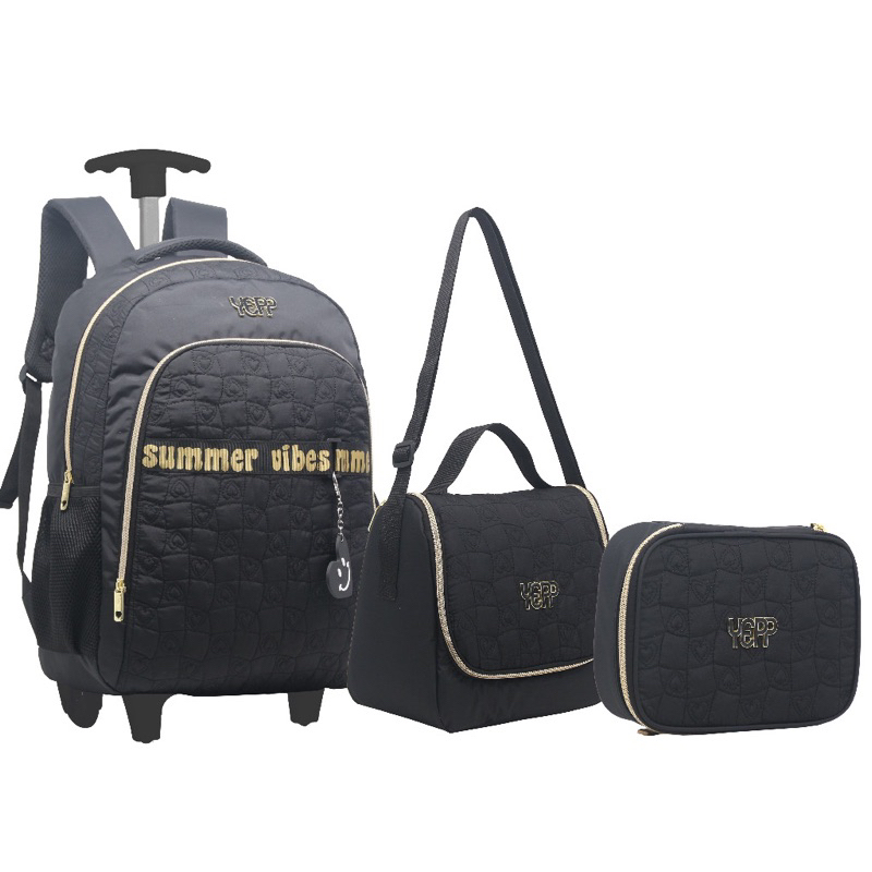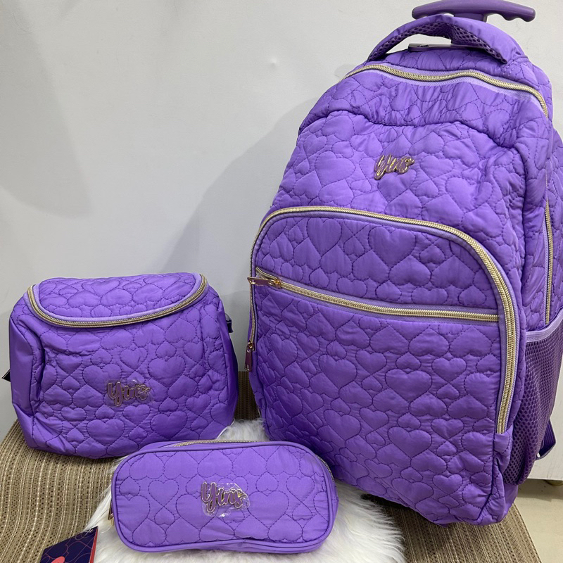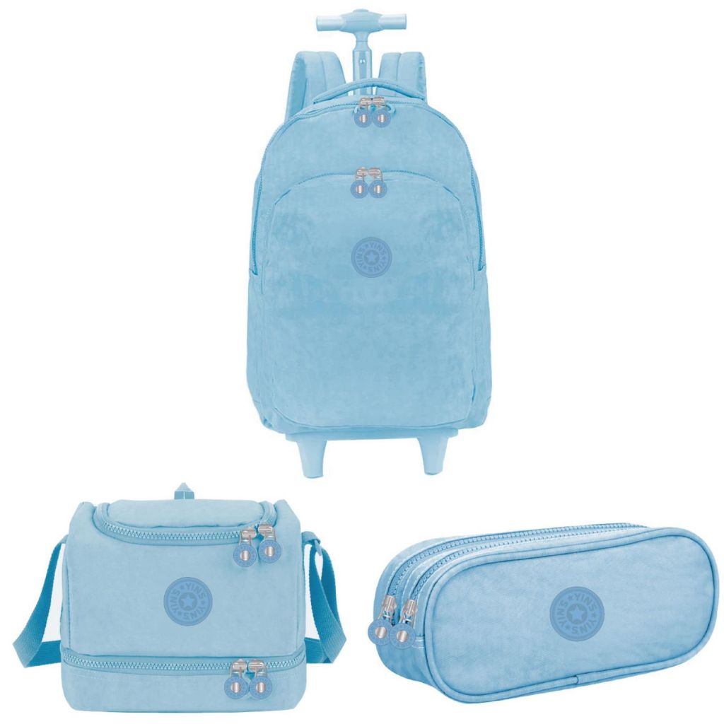 Kit Mochila de Rodinha Lancheira Estojo Feminina Menina Crinkle taquitel ys41052 Yins