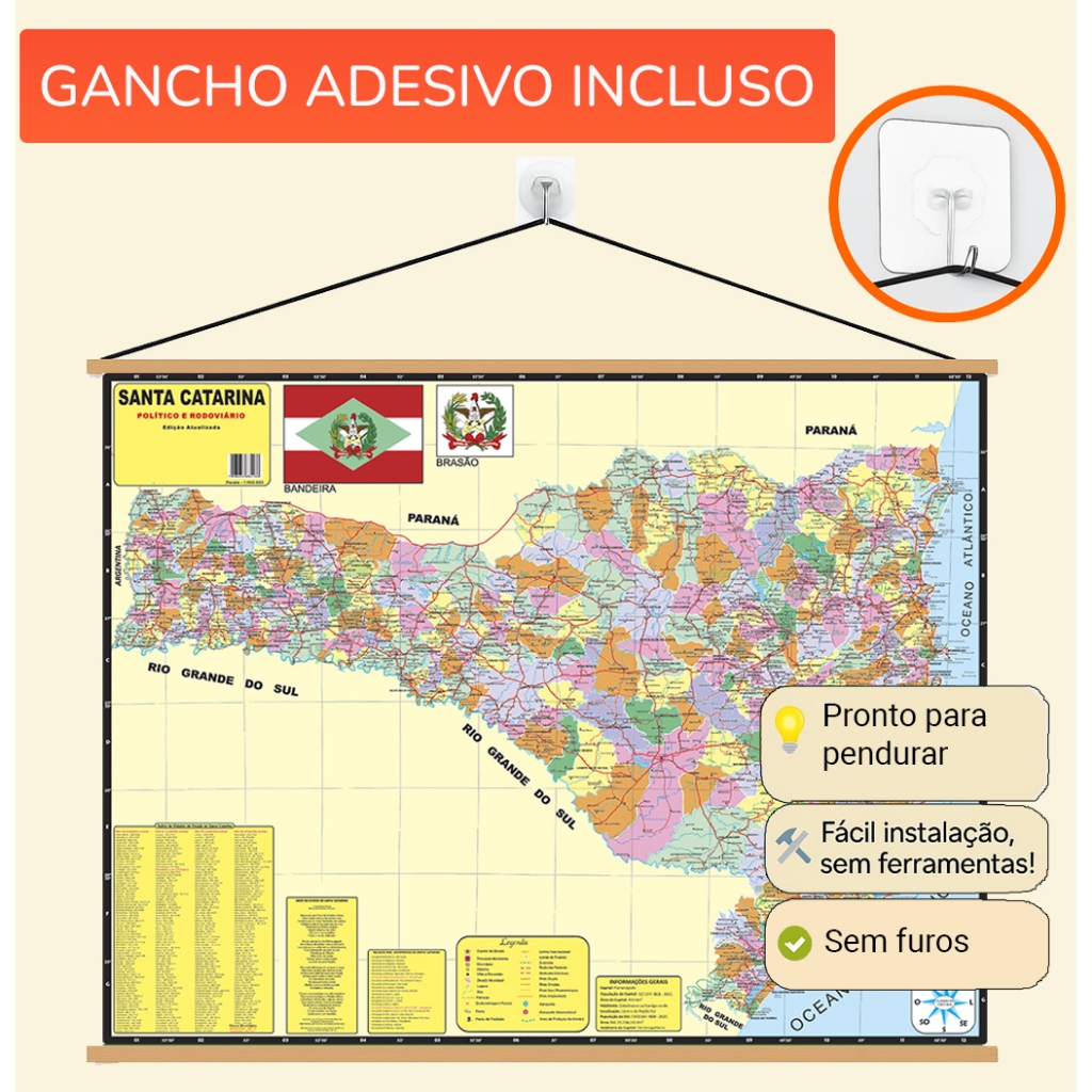 Mapa Santa Catarina Banner + Gancho Autocolante Pronto Para Pendurar - Grande 120x90cm