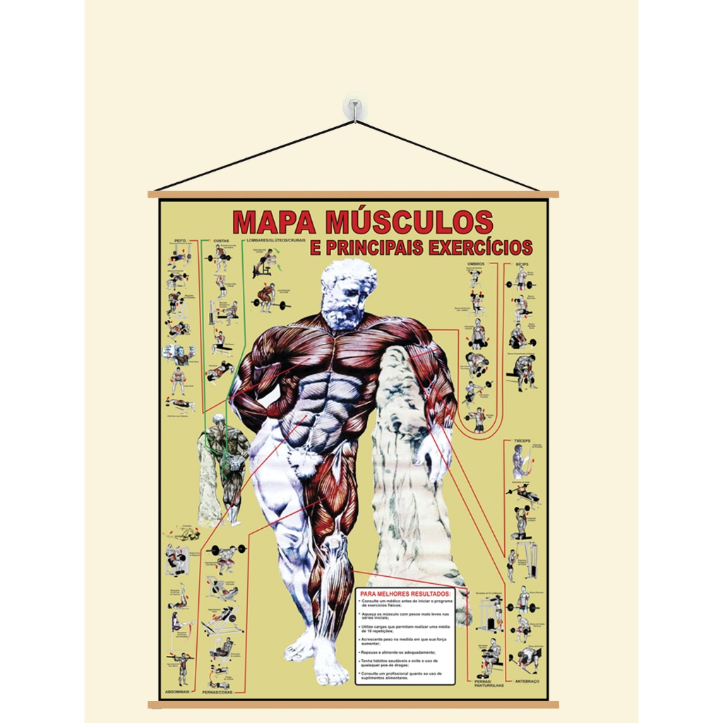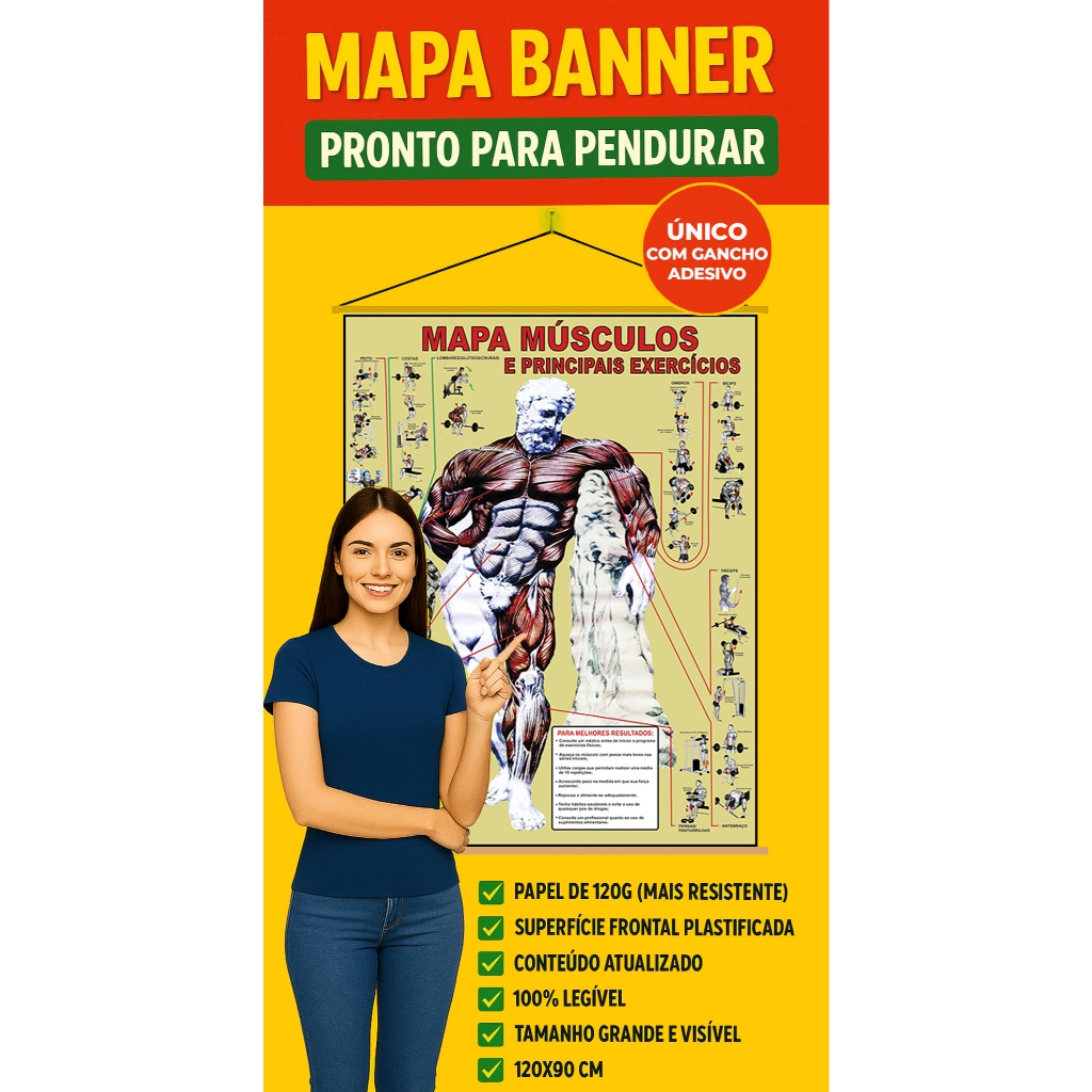 Mapa Músculo Exercício Academia Banner + Gancho Autocolante Pronto Para Pendurar