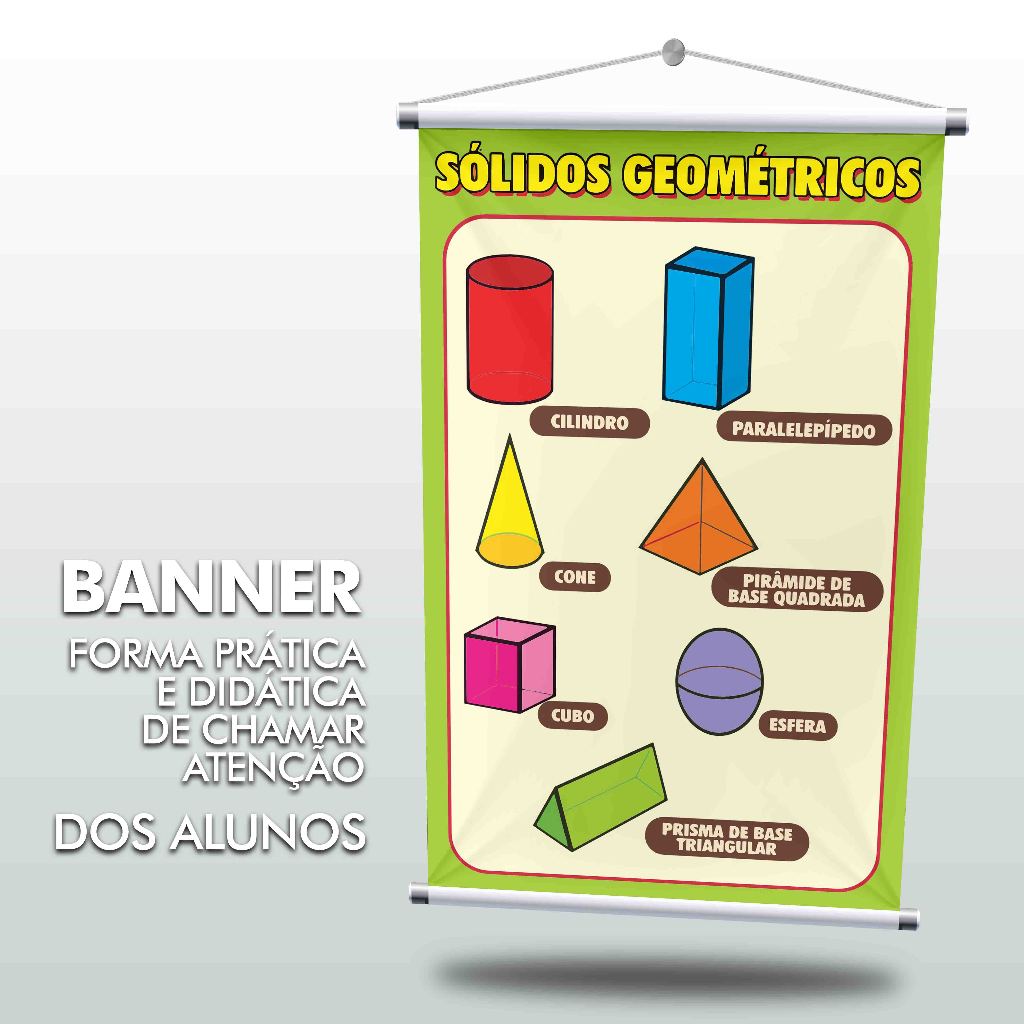 Banner Sala de Aula Sólidos Geométricos + Grátis suporte para pendurar