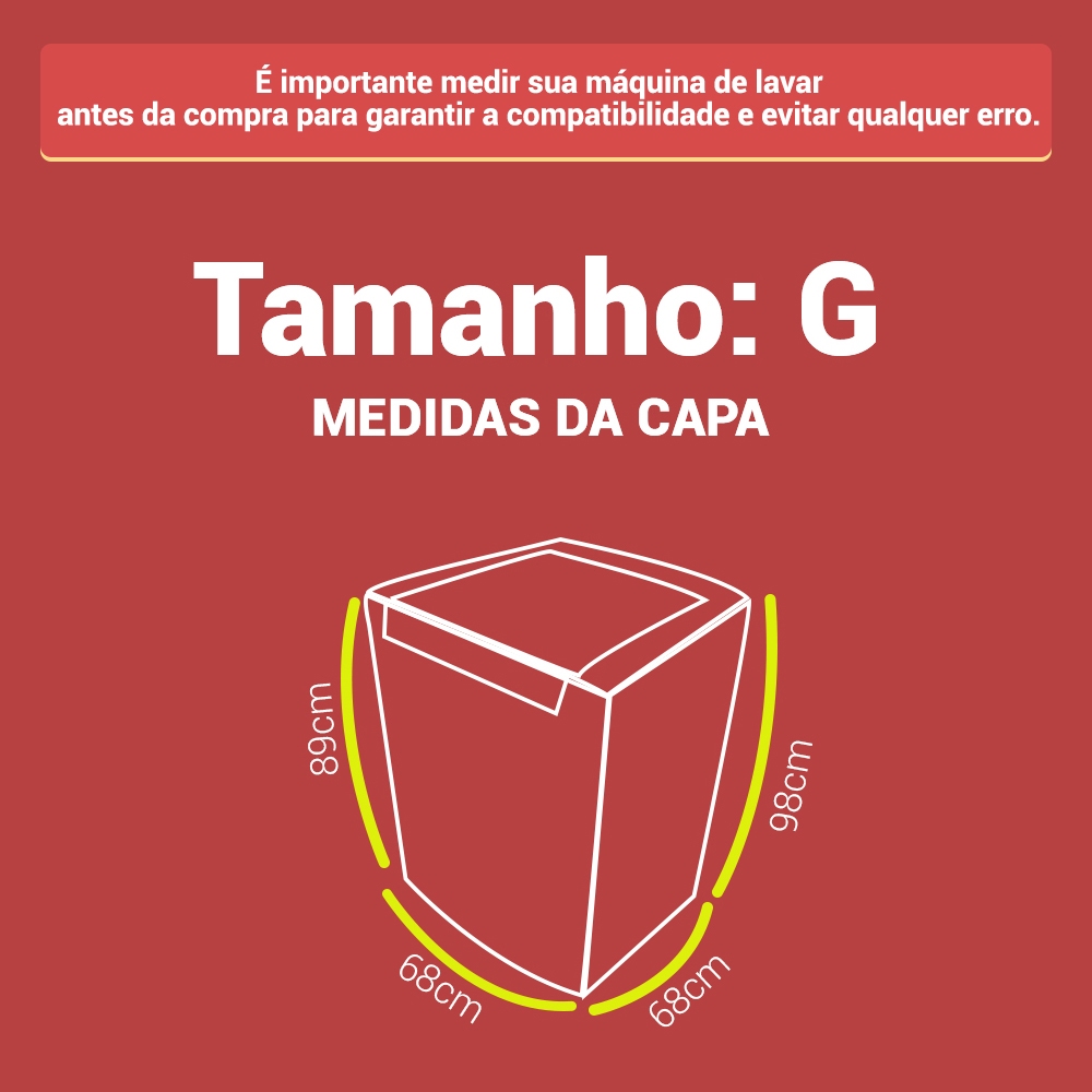 Capa Máquina de Lavar 6kg 7kg 8kg 9kg 11kg 12kg a 16kg Couronil Forrada Brastemp Electrolux Consul