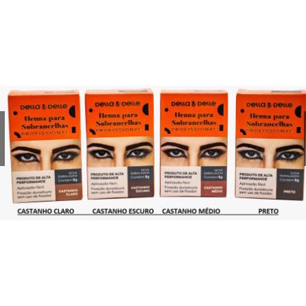 Della e Delle Henna Para Sobrancelhas 8g - Cores De Renna Para Escolher Fixador Incluso Na Fórmula