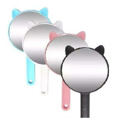 Espelho De Mão 23X13cm Gatinho Com Orelhas Fofo Adolescente Maquiagem