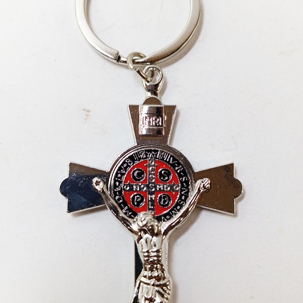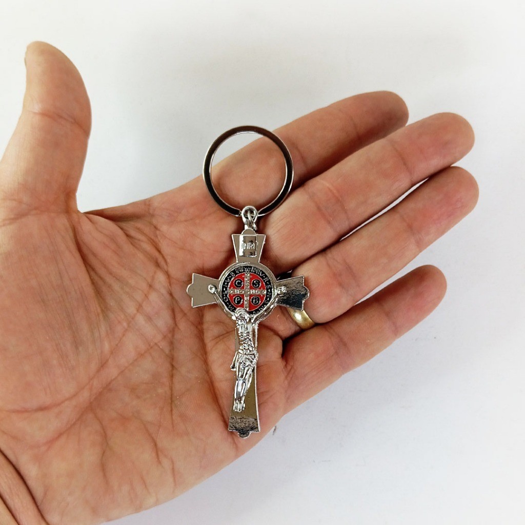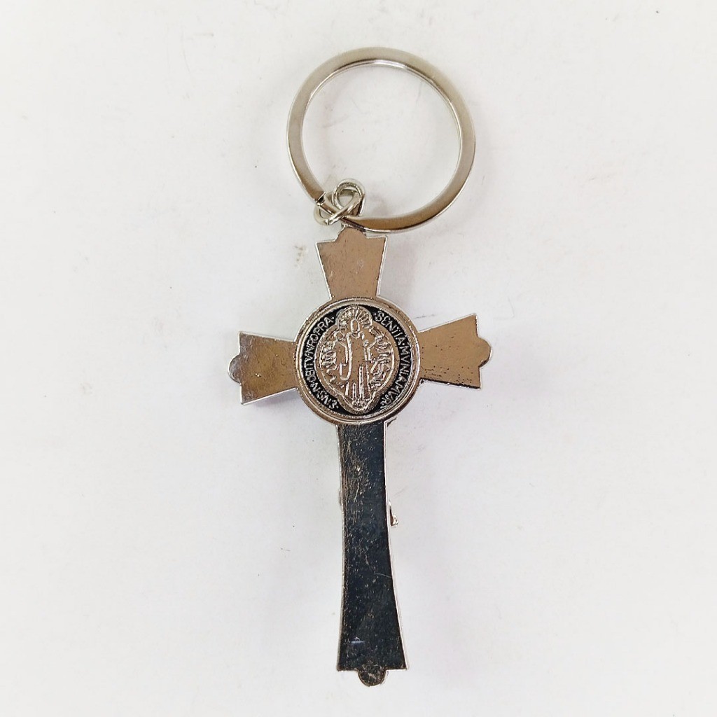 Chaveiro Crucifixo Cruz Medalha de São Bento Prata