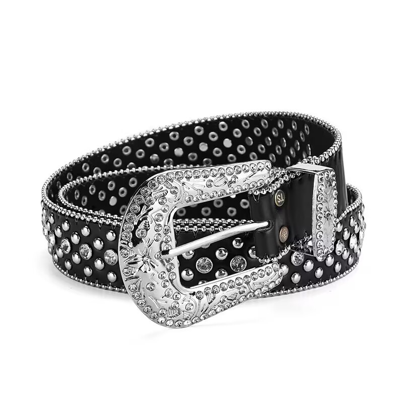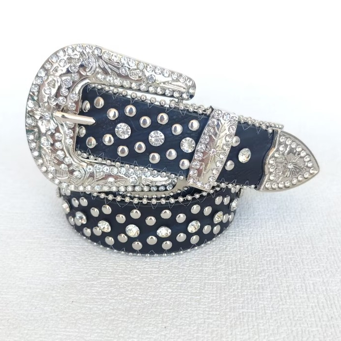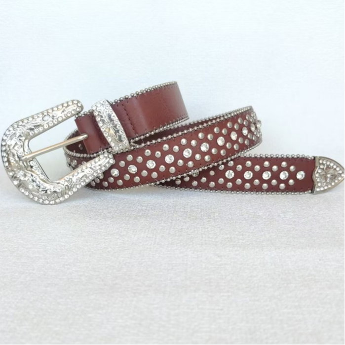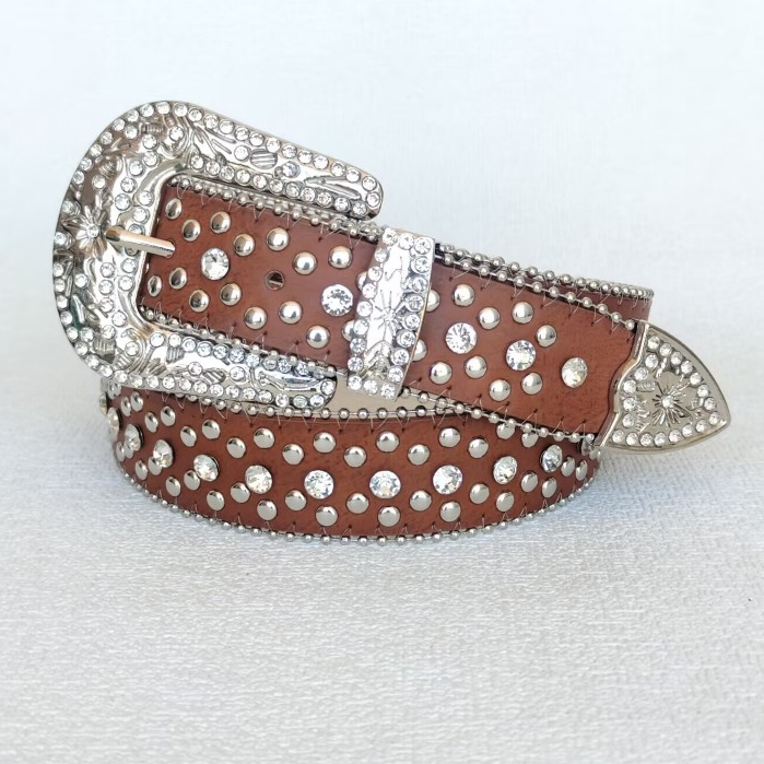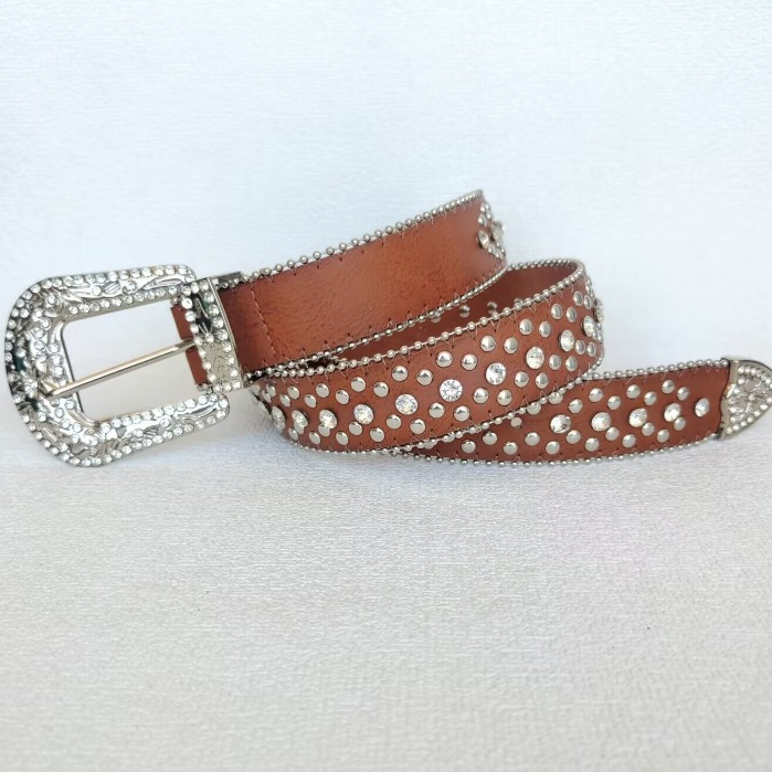Cinto Feminino Country em Strass Brilhos Fivela Prata Ocidental Cowboy Tachas Blogueira Moda Balada