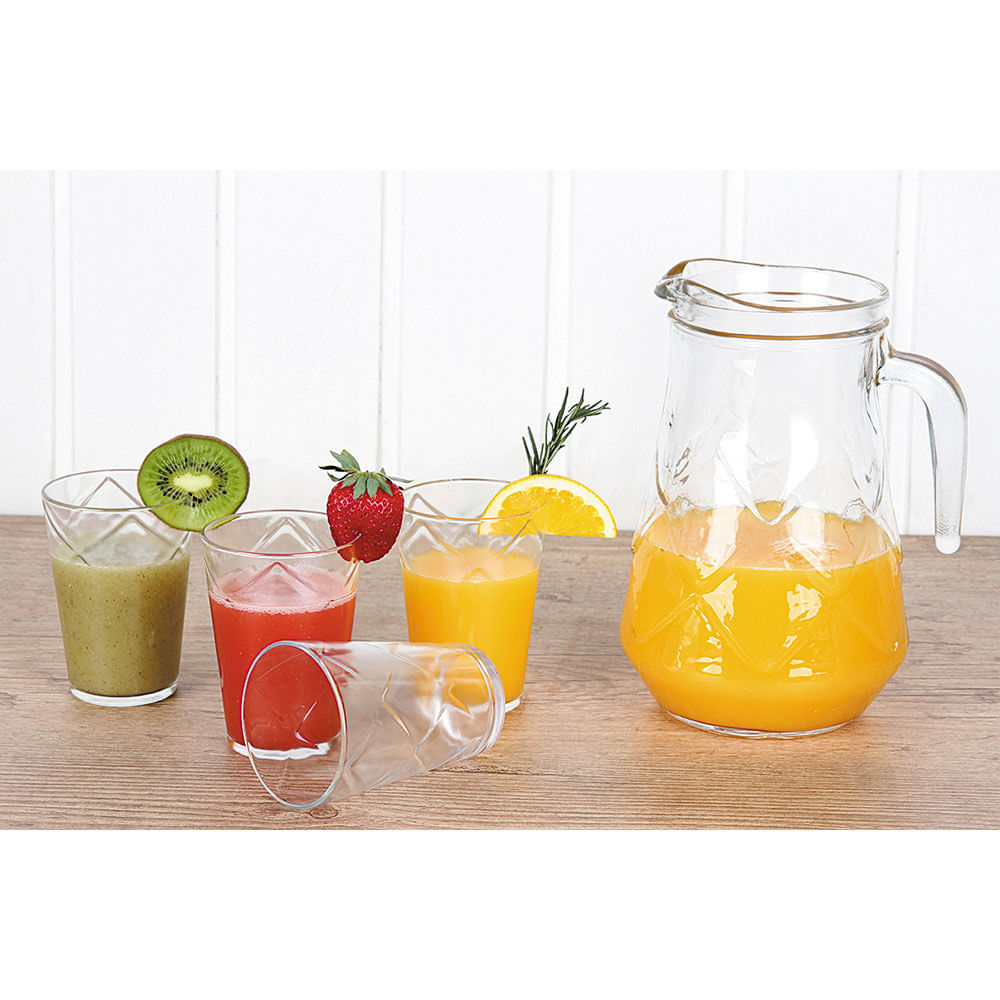 Conjunto Jarra 5 Peças de Vidro Maracatu Nadir Figueiredo