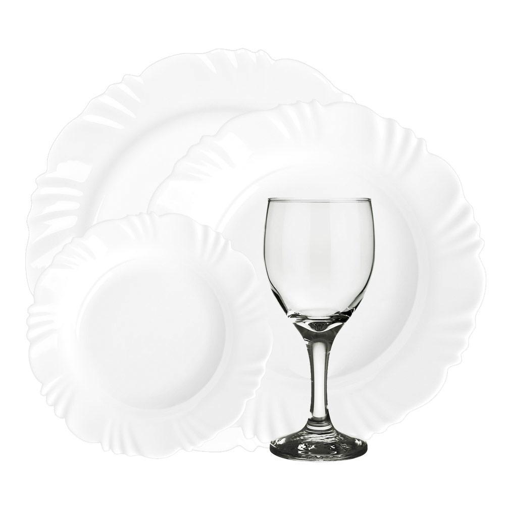 Aparelho de Jantar 16 Peças de Vidro Pétala com Taças Windsor Duralex