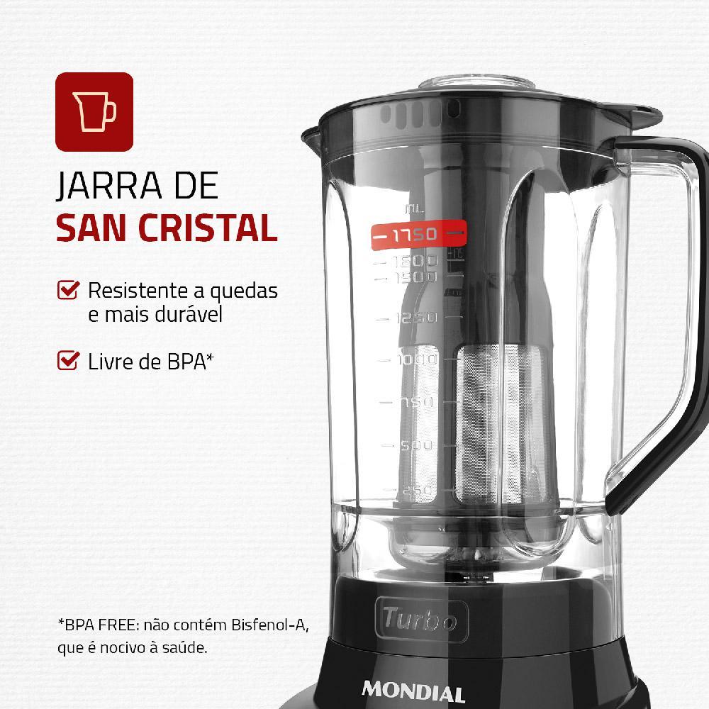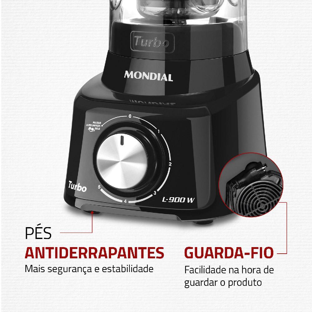 Liquidificador com Filtro 900W 2.7L Mondial Turbo L-900 FB 5 Velocidades Preto 127V