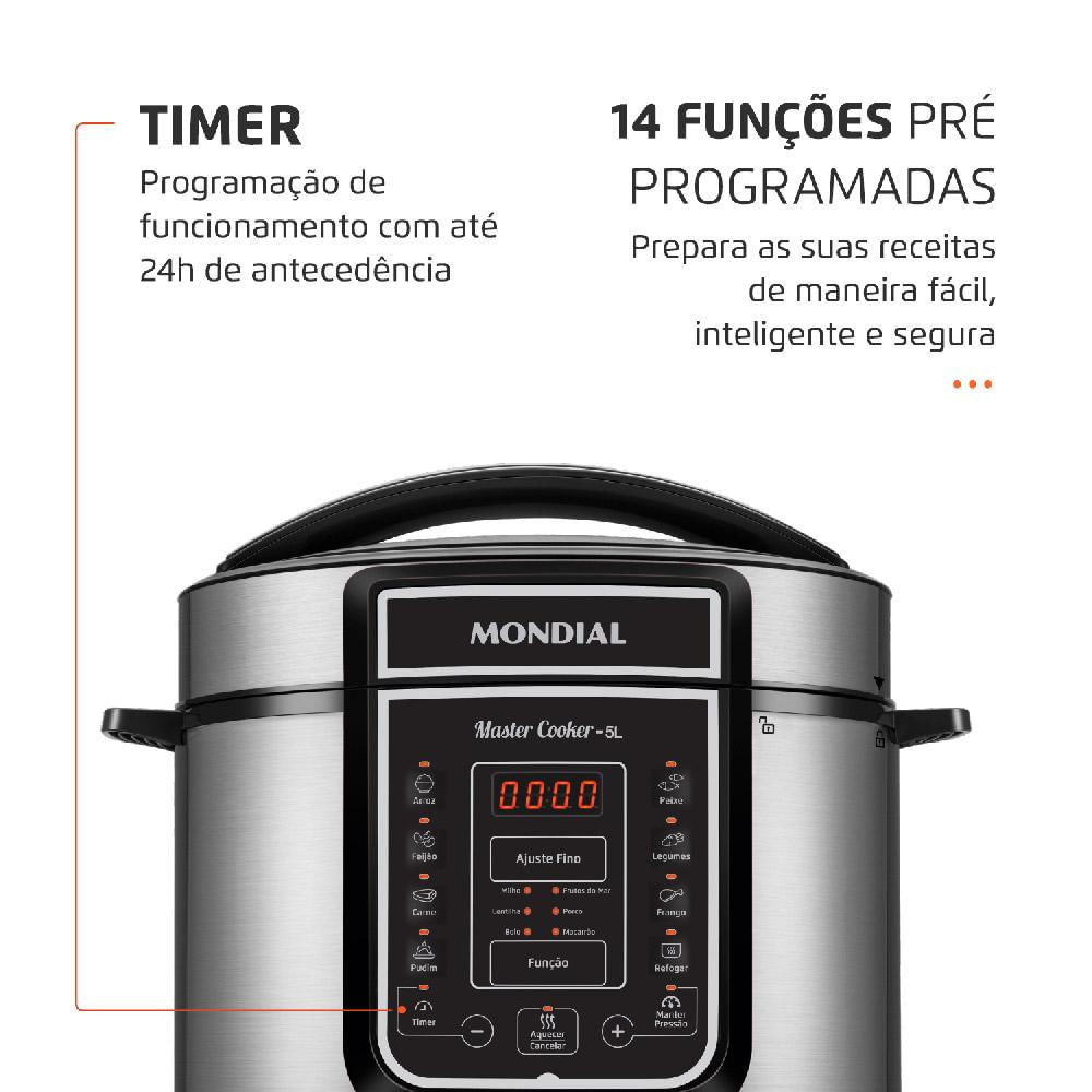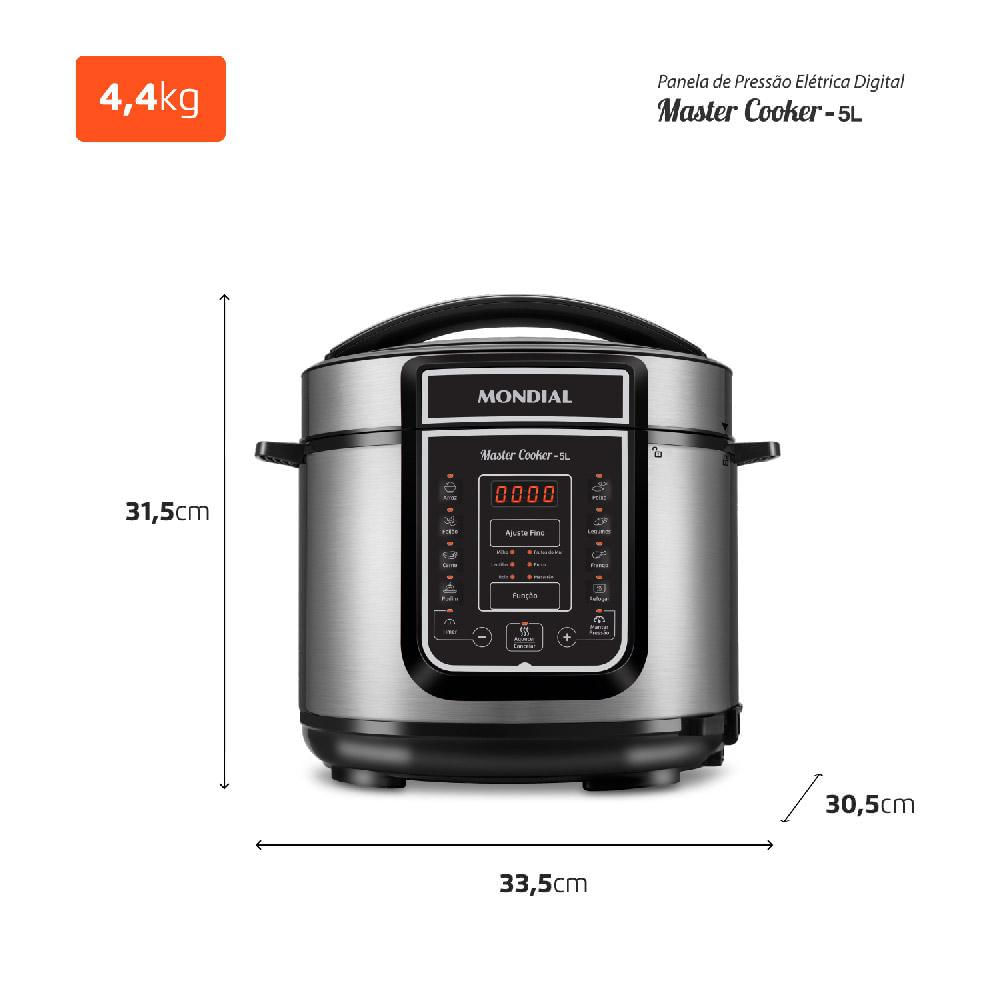 Panela de Pressão Elétrica 5 Litros Mondial Master Cooker PE38 Preta com Prata 127V