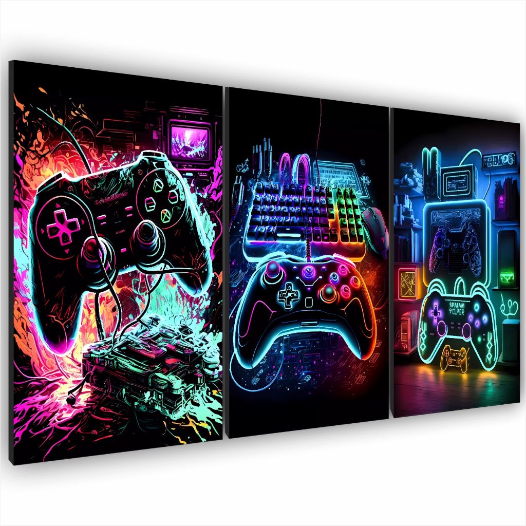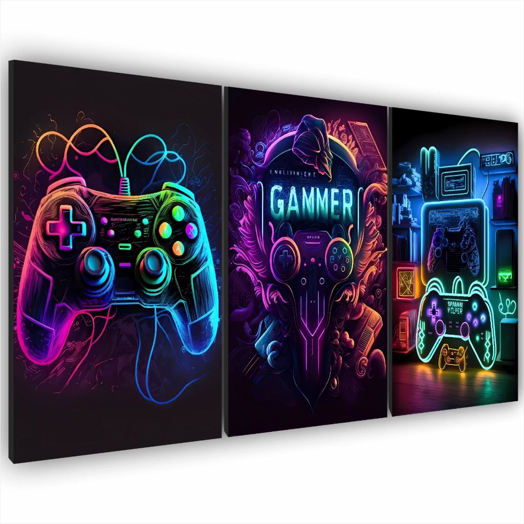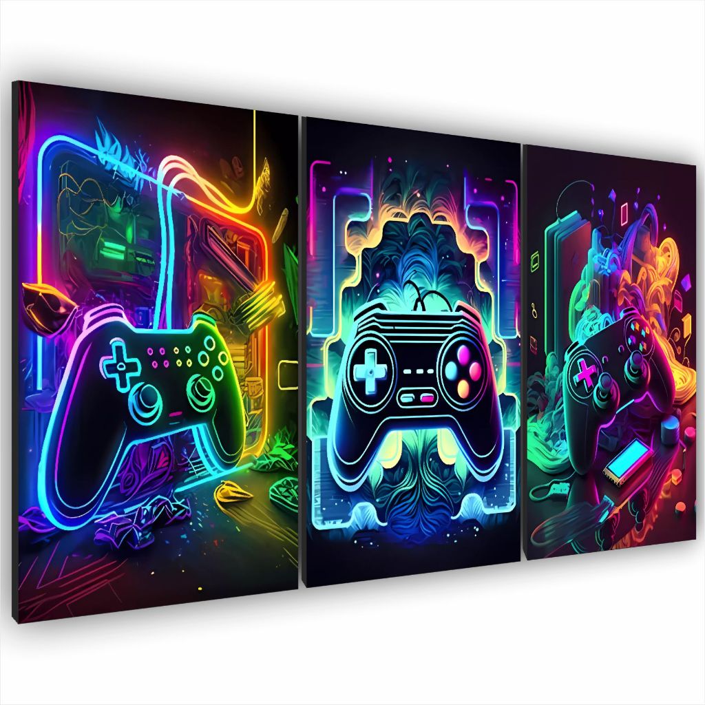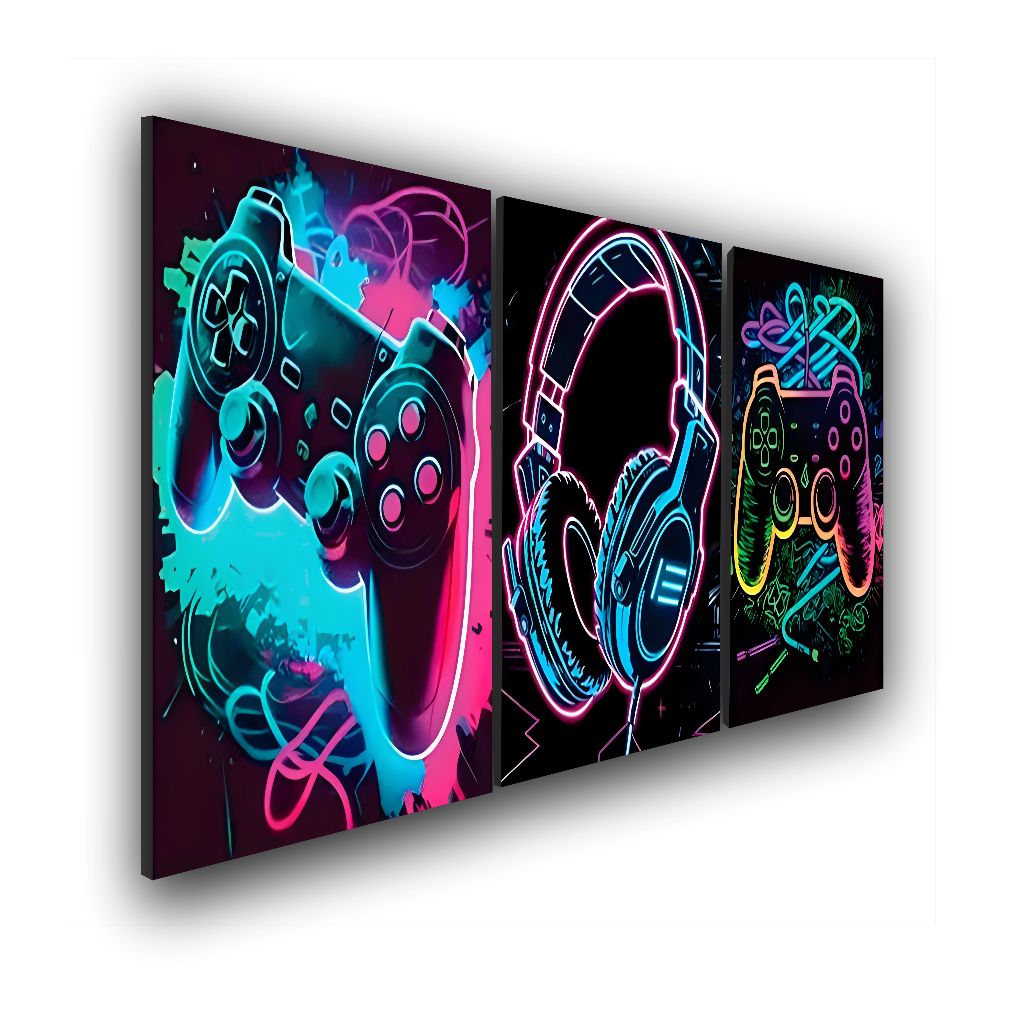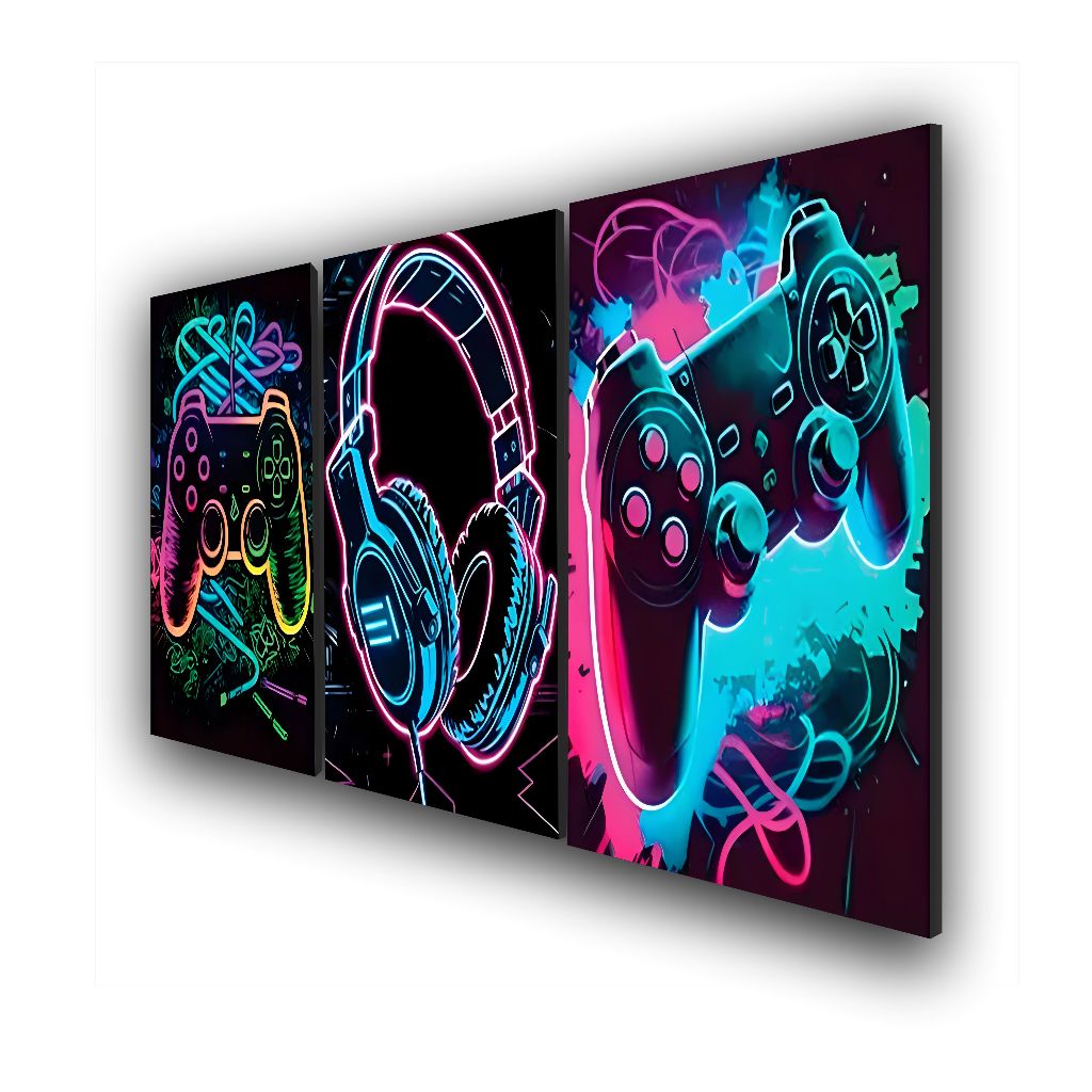 Quadro Decorativo Gamer Video Game Neon Sala Quarto 3 peças