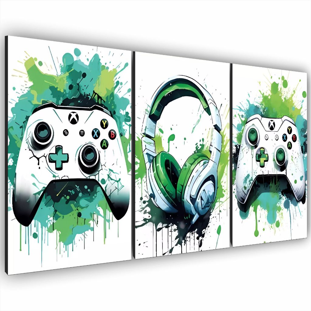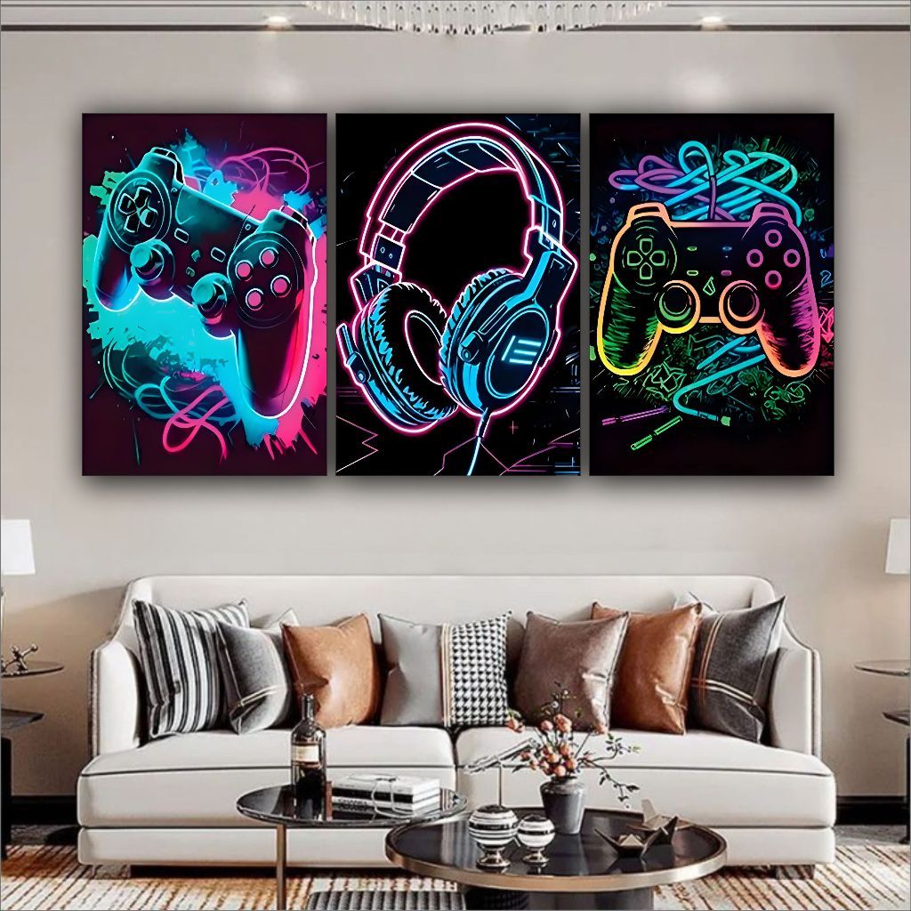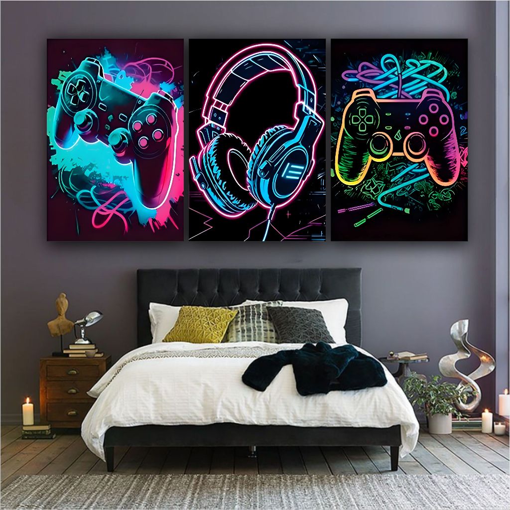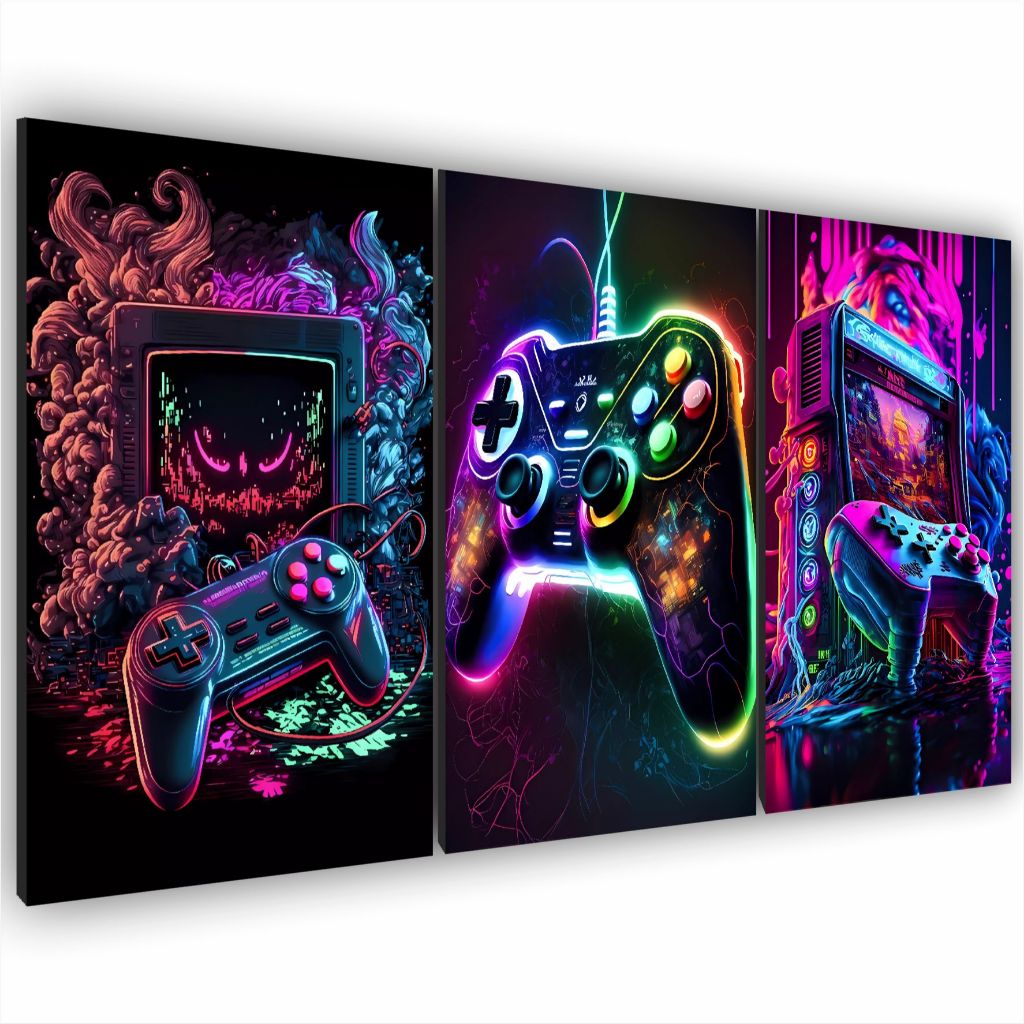 Quadro Decorativo Gamer Video Game Neon Sala Quarto 3 peças