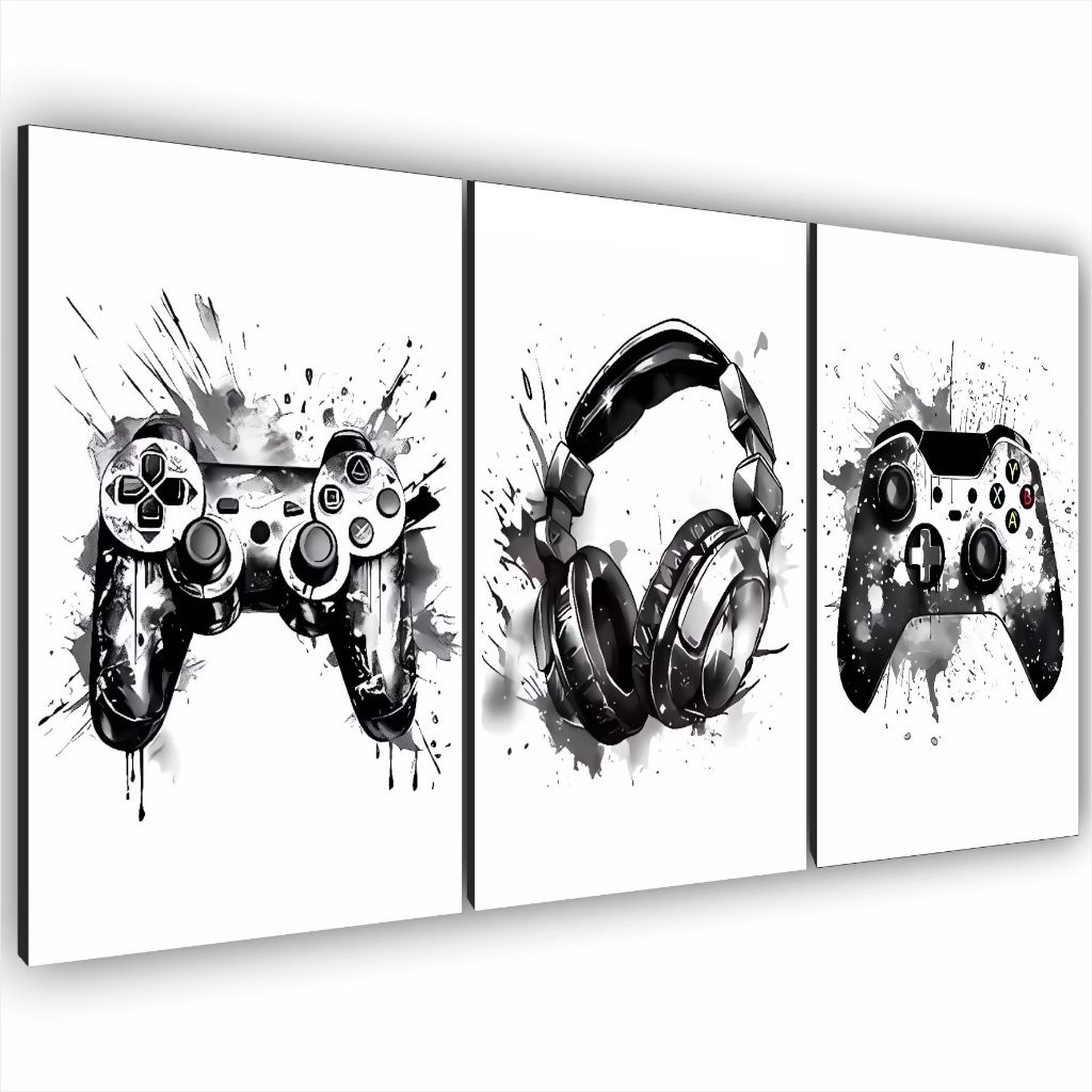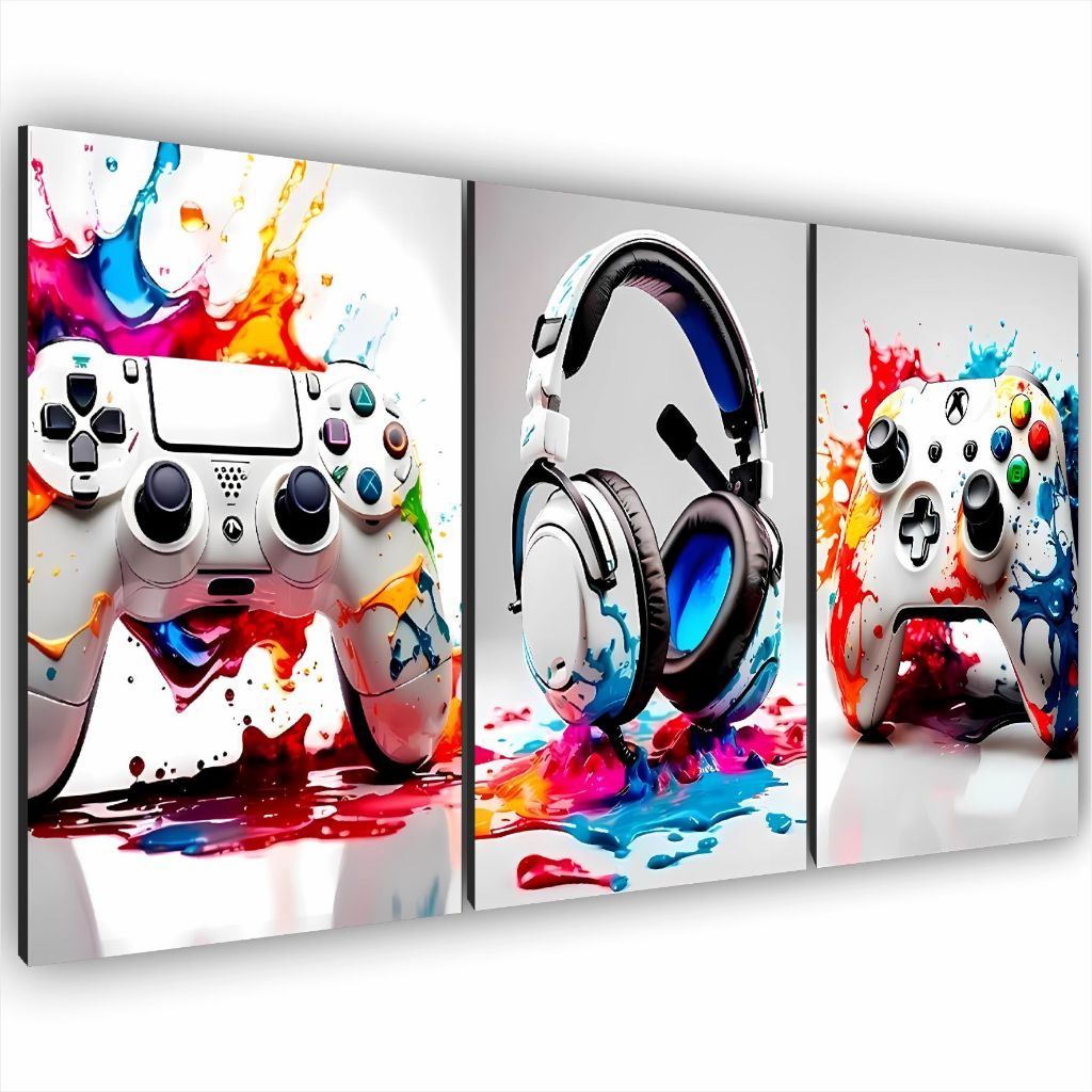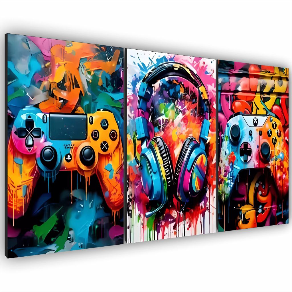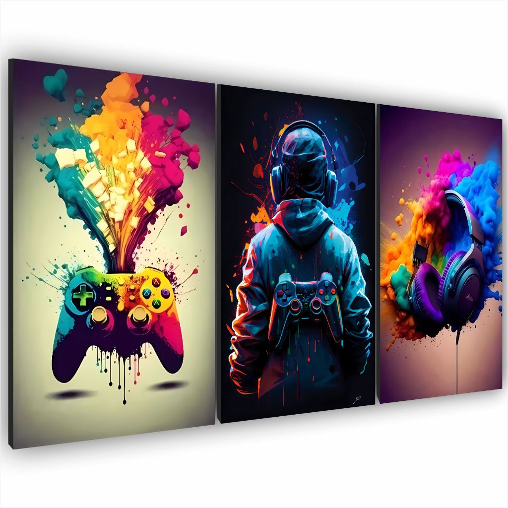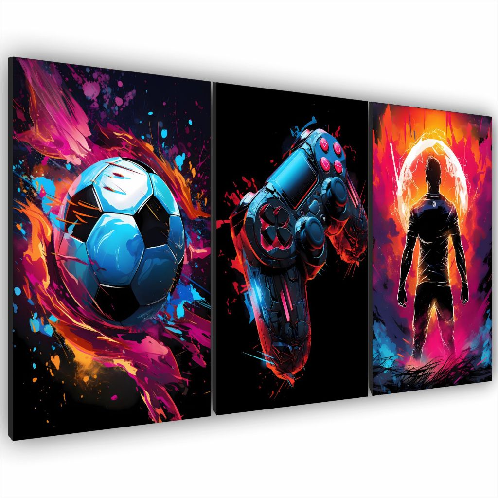 Quadro Decorativo Gamer Video Game Neon Sala Quarto 3 peças