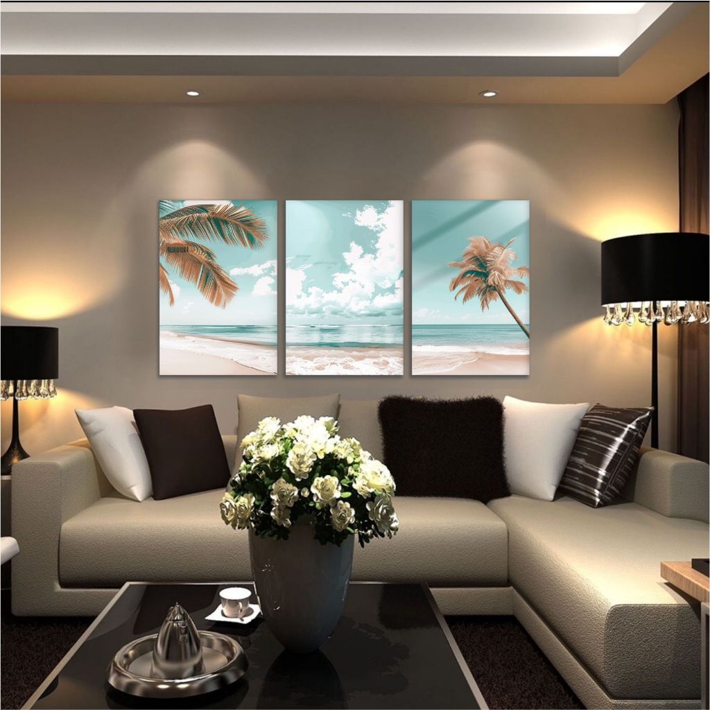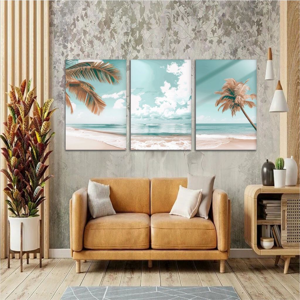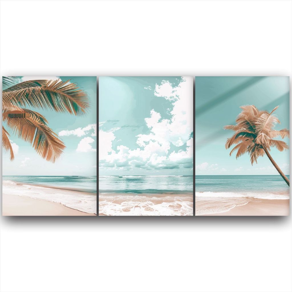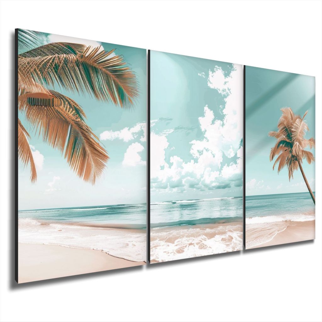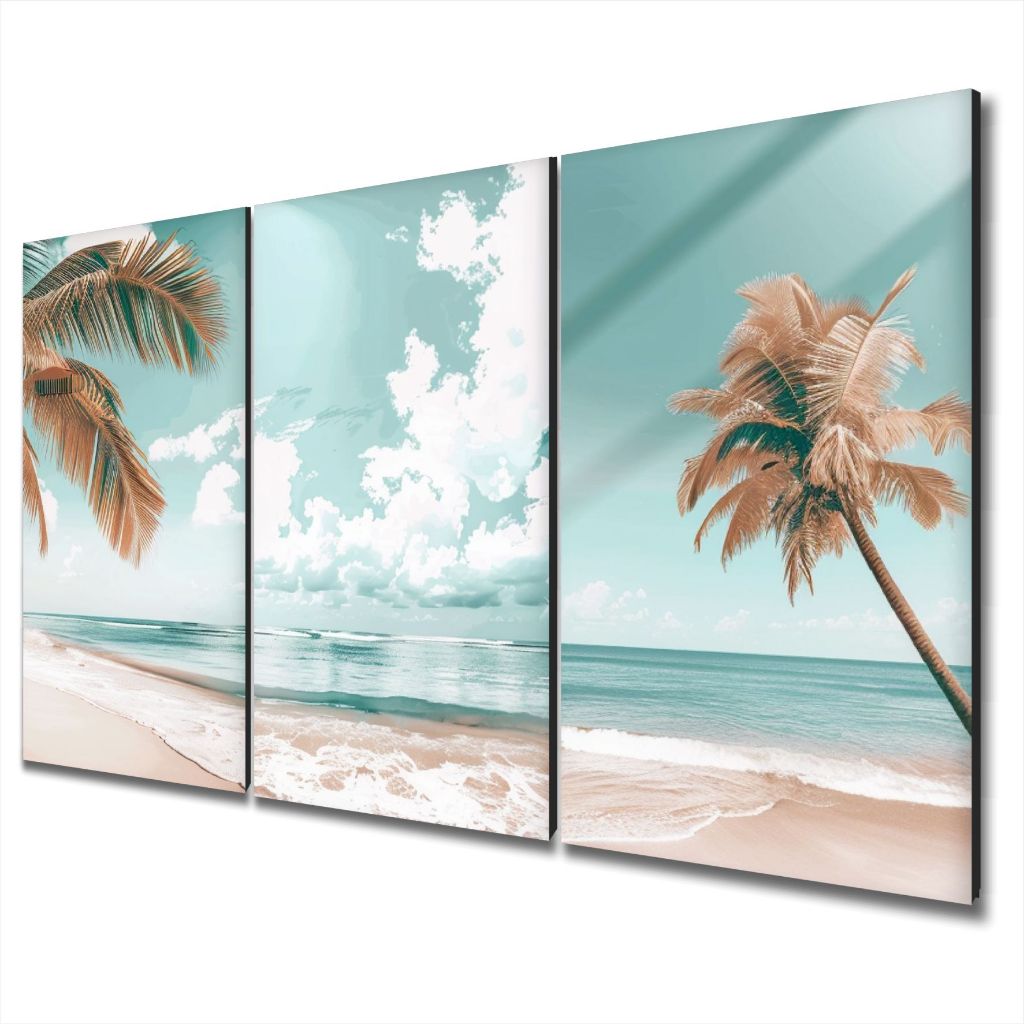 Quadro Decorativo Paisagem Praia Coqueiro Mar Céu Sala 3 PEÇAS