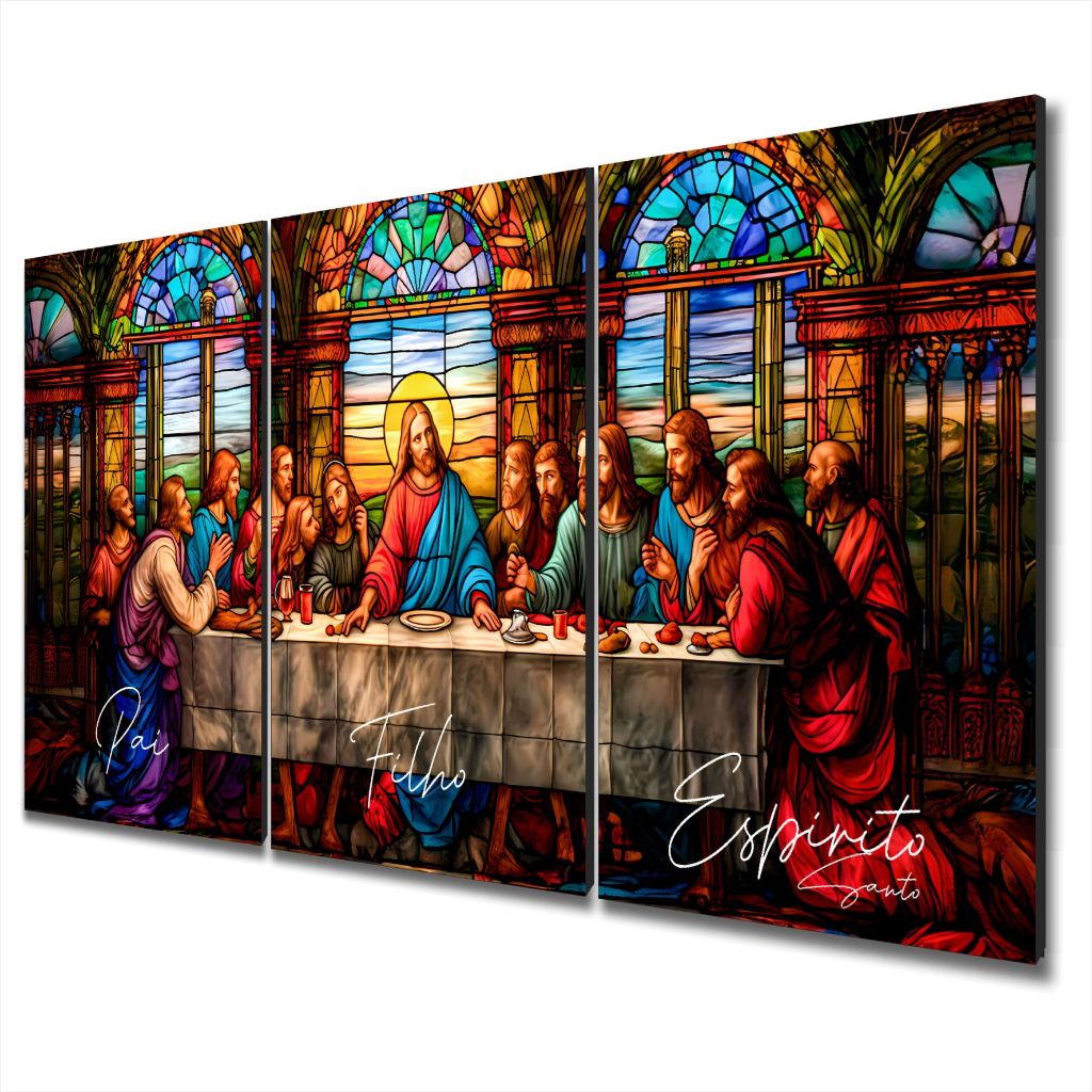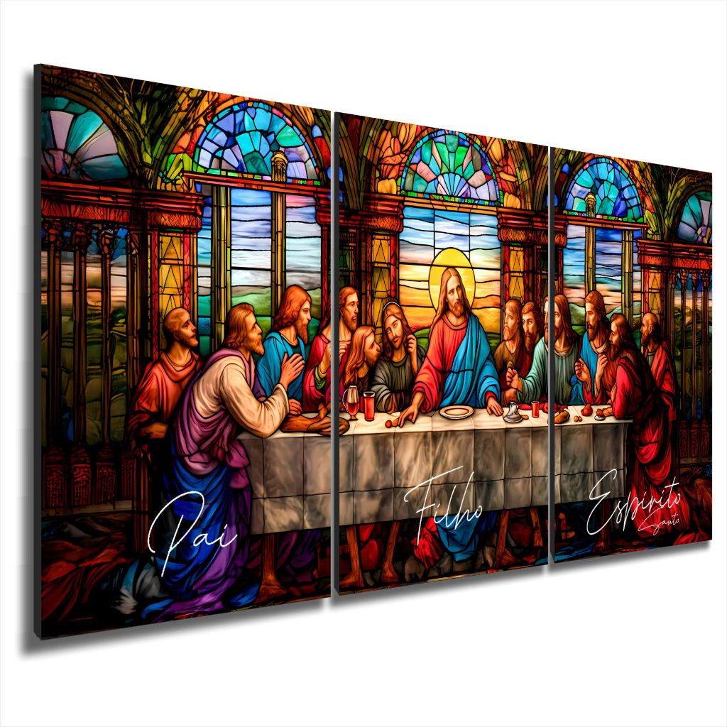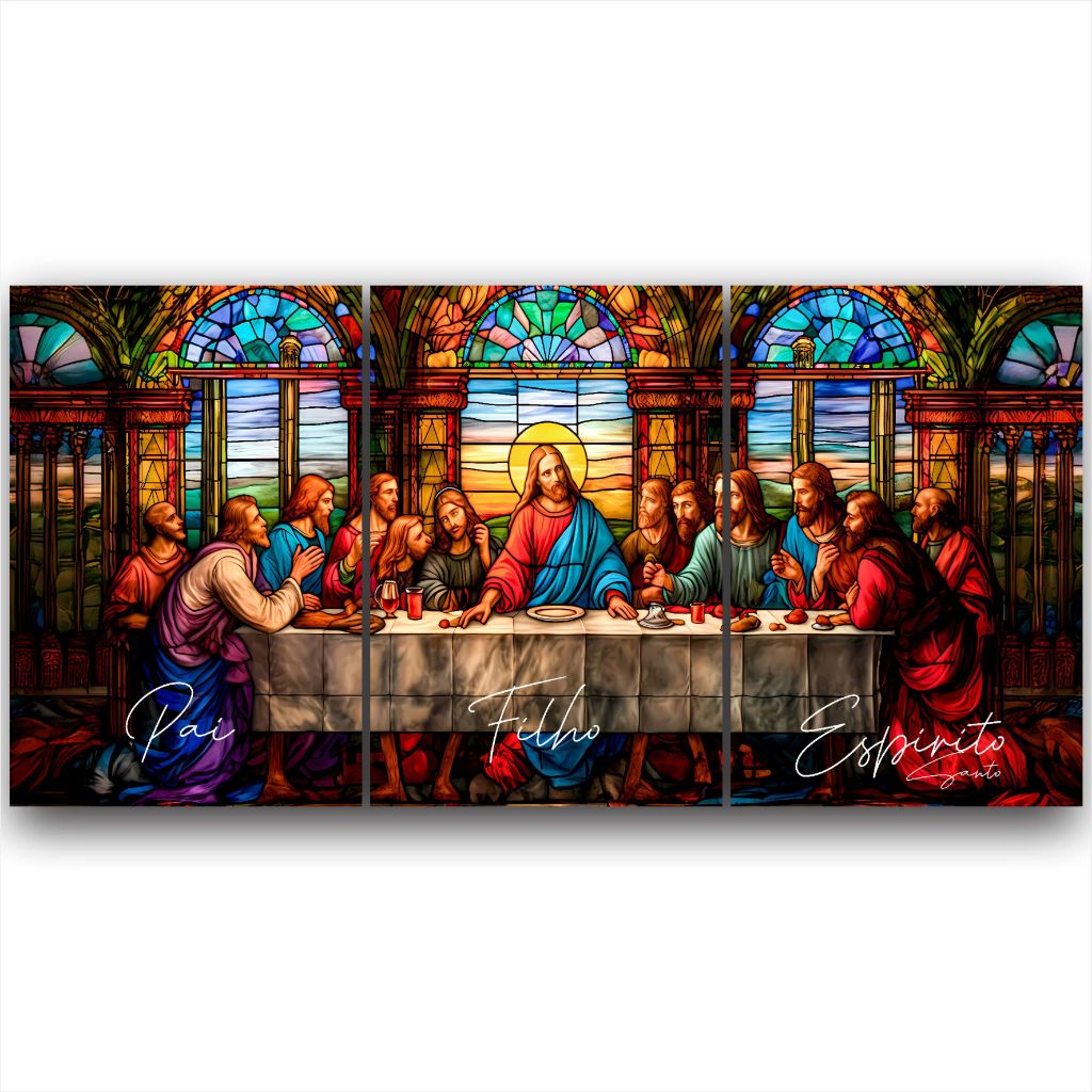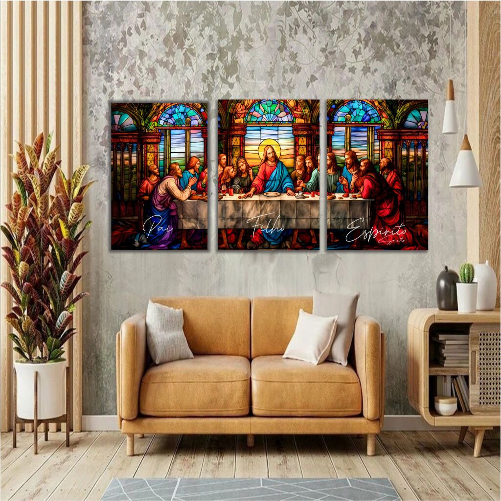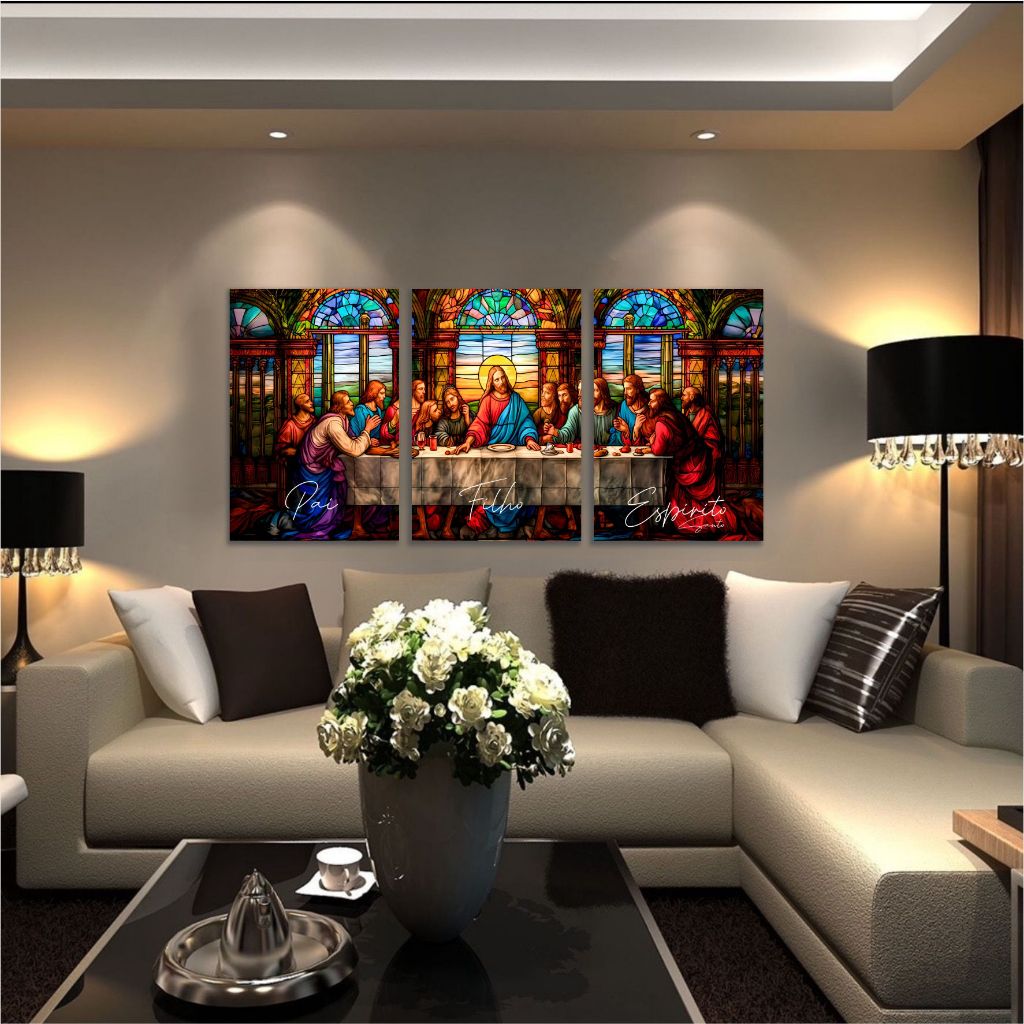 Quadro Decorativo Santa Ceia Jesus Pai Filho Espírito Sala 3 PEÇAS