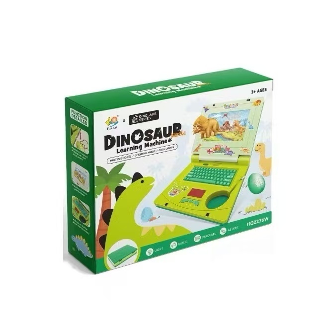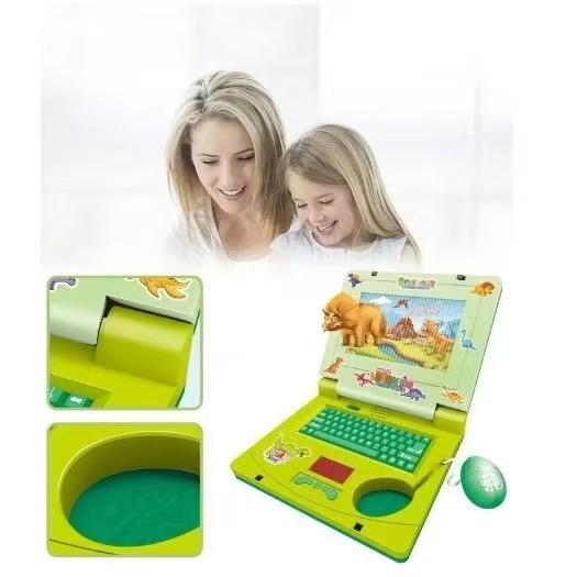 Brinquedo Notebook Dinossauro De Brinquedo Laptop Infantil Musical com Luz e Figurinha para Personalizari
