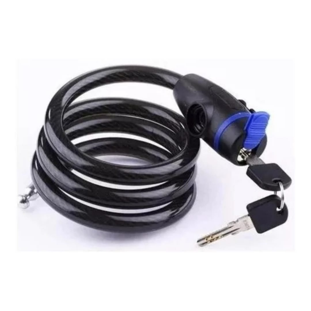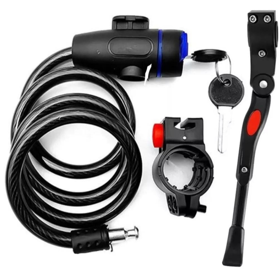 Trava Cabo De Aço Cadeado Segurança Bike Moto Espiral Anti-Roubo + Descanso Pezinho Para Bike Lateral Com Regulagem