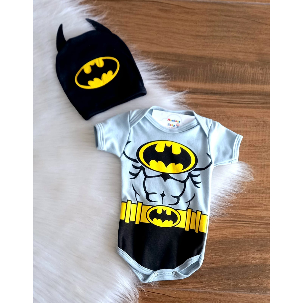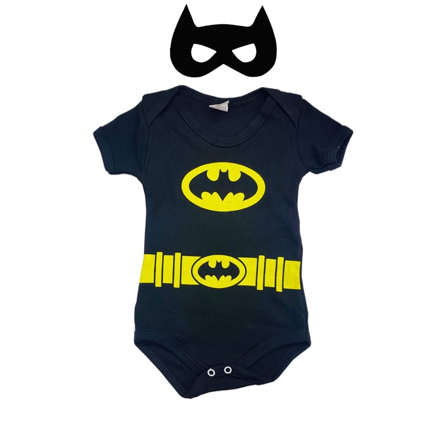 Body Bebê Batman com Máscara Infantil Unissex Tema Super-Herói