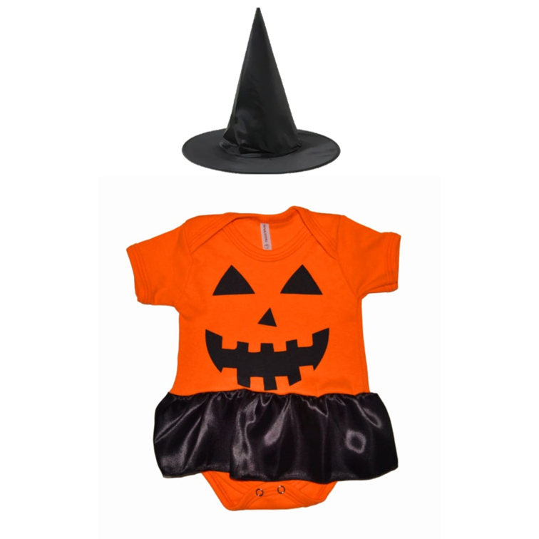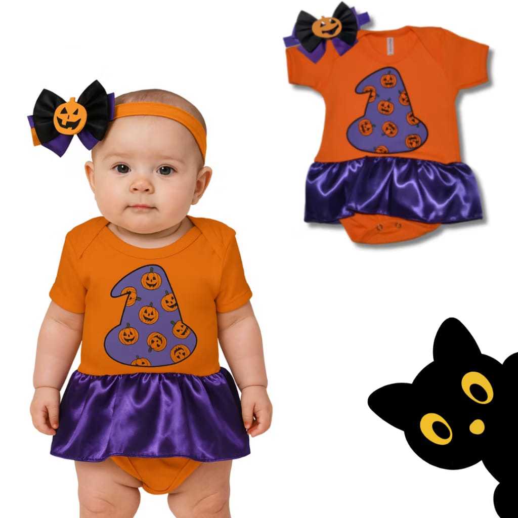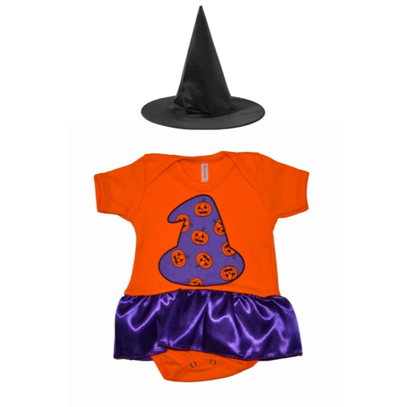 Body Bebe Temático de Bruxa Body + Chapeu Mesversario Fantasia halloween
