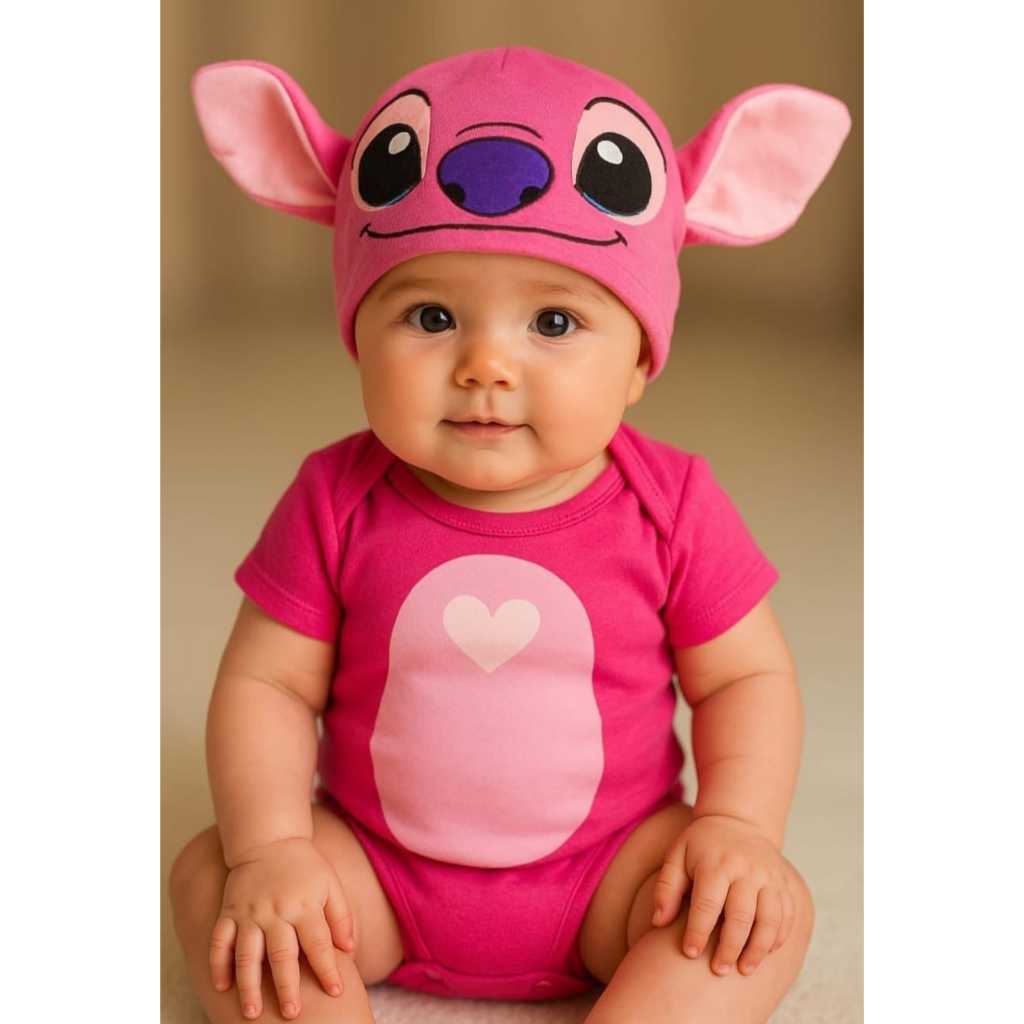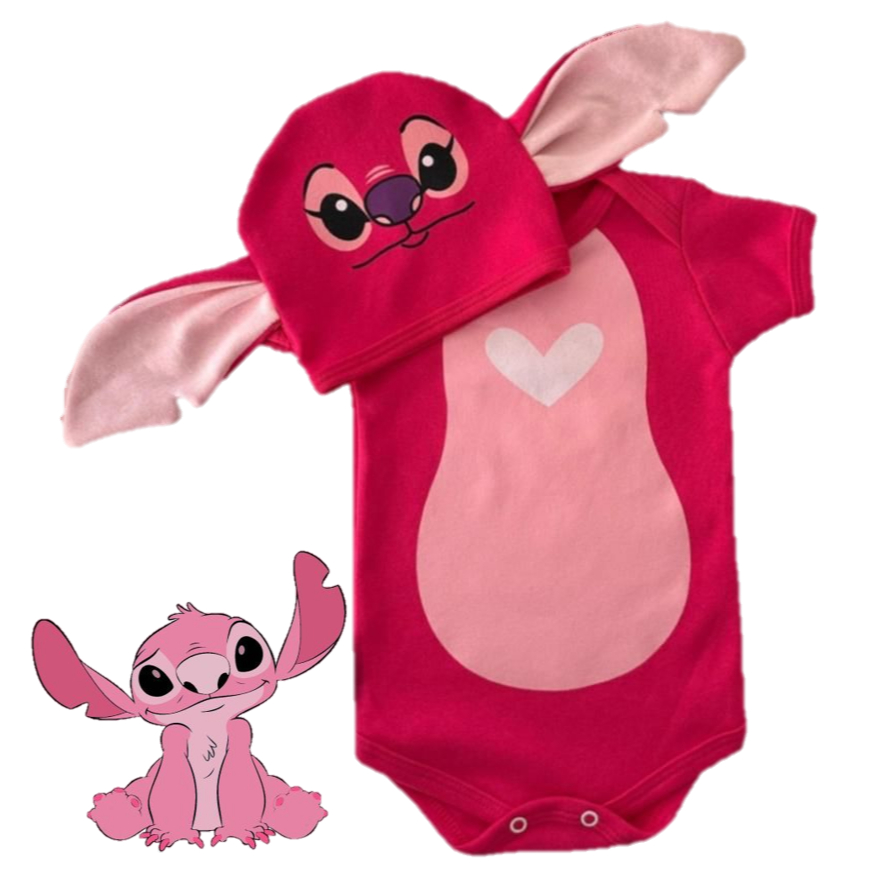 Body Bebe Stitch e Angel Body + Touca Bori de Mesversario Fantasia Infantil