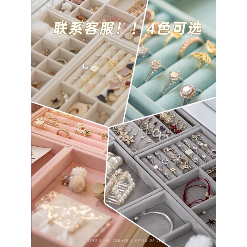 Kit 4 modelos Porta Joia de Veludo - Armazenamento de Jóias Anéis Brincos - Bandeja Organizadora com Gavetas e Vitrine
