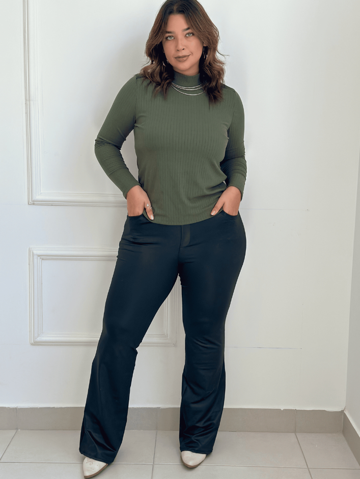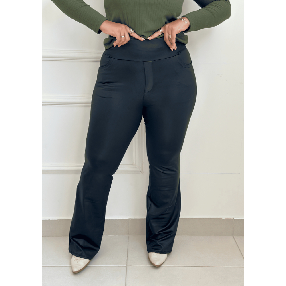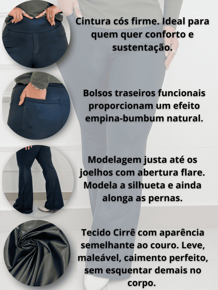 Calça Plus Size Disco Cirrê Encorpada Legging Cintura Alta Com Bolsos