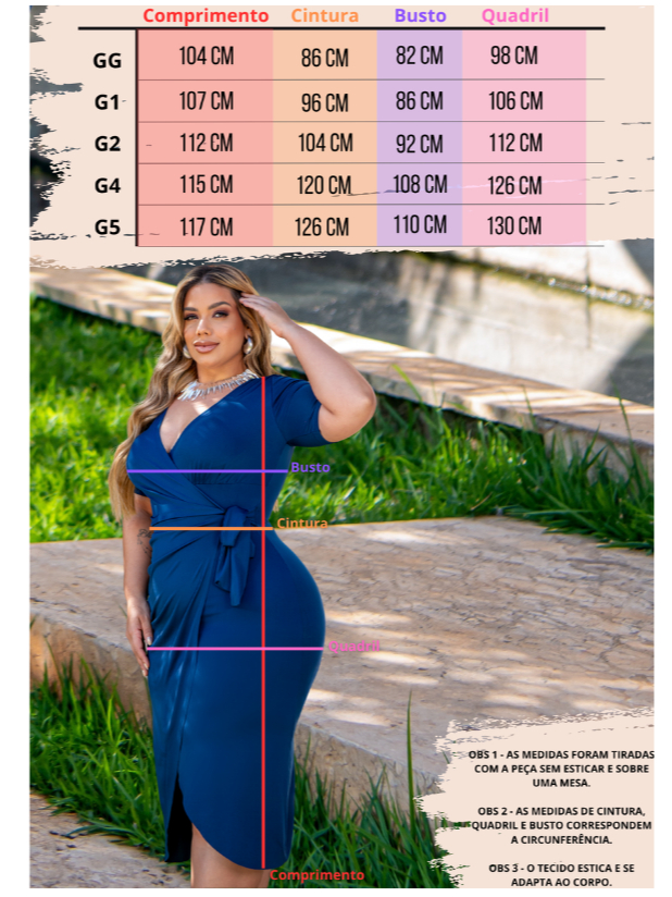 Vestido Gola V Pluz Size Princesa Leve Transpassado Igreja Com Manguinha
