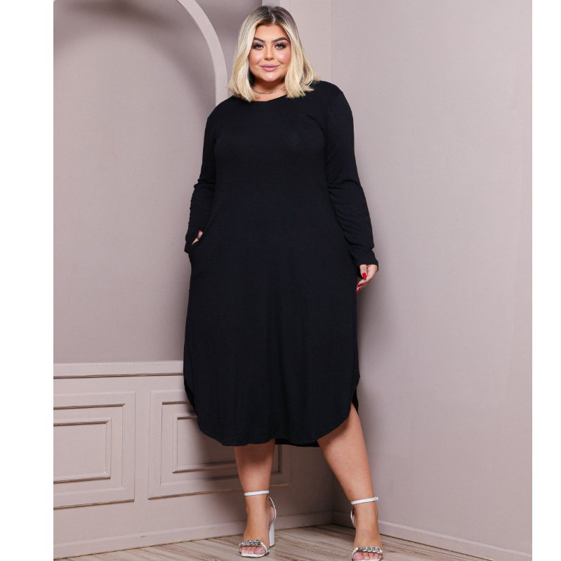 Vestidos Plus Size Manga Longa Feminina Soltinho Com Bolsos Gestante Grávida