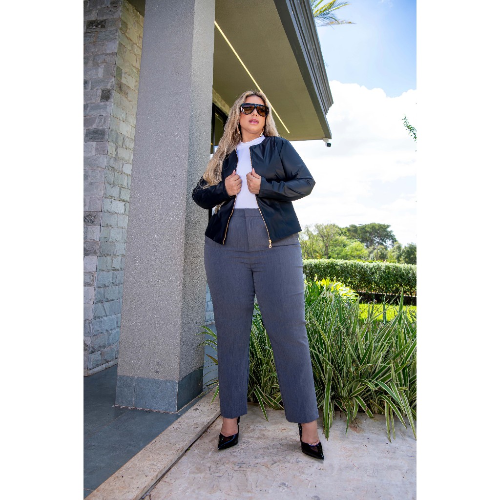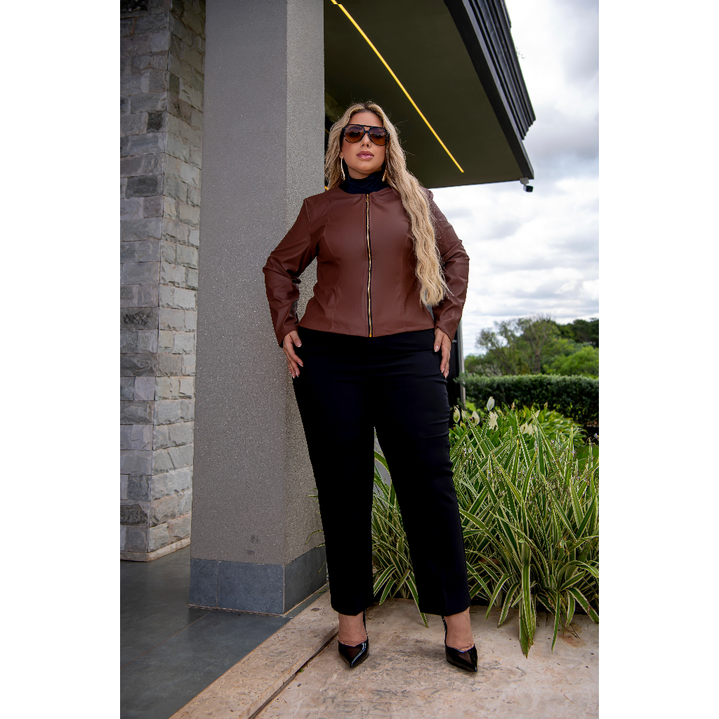 Jaqueta Feminina Plus Size Couro Sintético com Zíper Casaco Inverno Moda Elegante