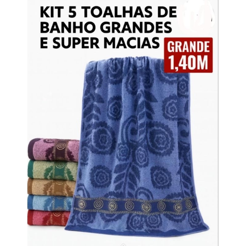 kit 5 Toalhas de banho grande, grossa de algodão muito macia