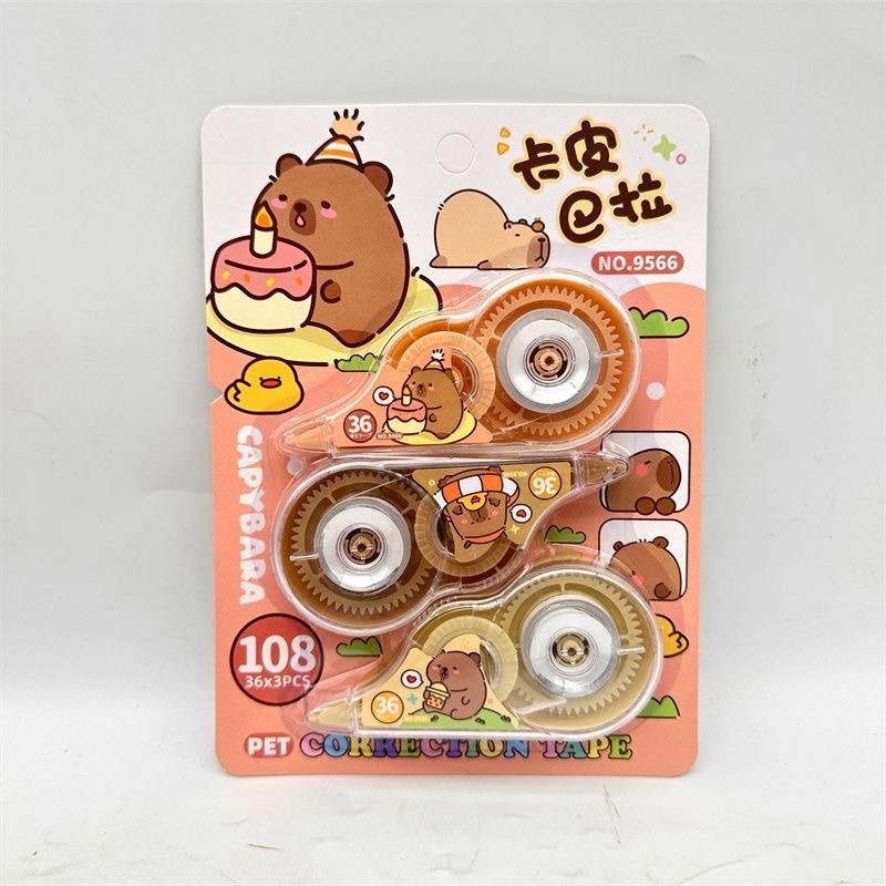 Kit 3 Fitas Corretiva Fofa Grande Capivara Kawaii Branquinho escolar papelaria fofa volta as aulas