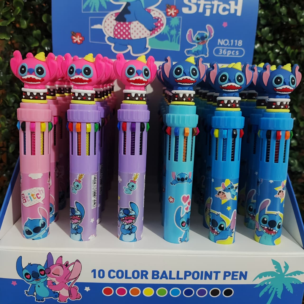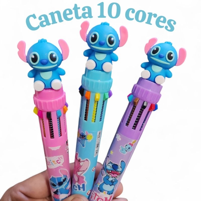 Caneta 10 cores esferográfica stitch Kawaii Caneta fofa Papelaria fofa e criativa material escolar