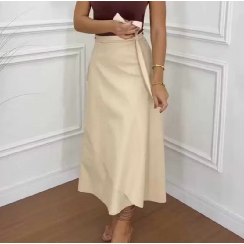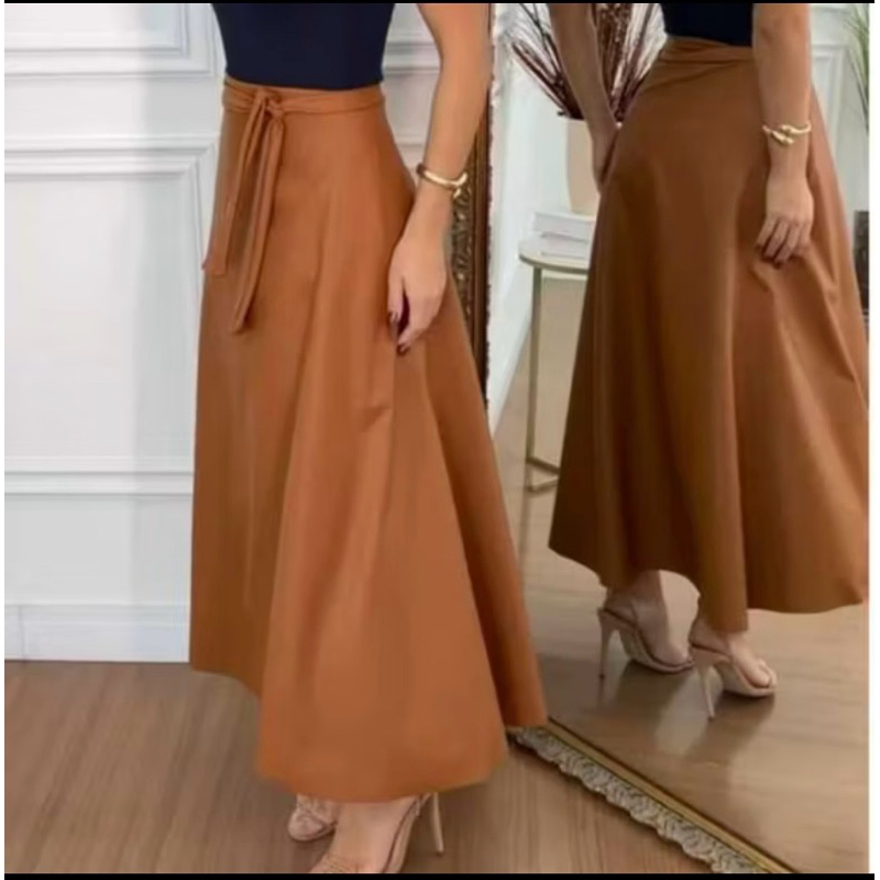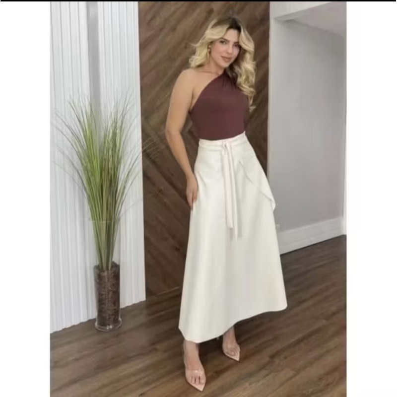 Saia envelope transpassada couro marrom| couro fake | linda moderna