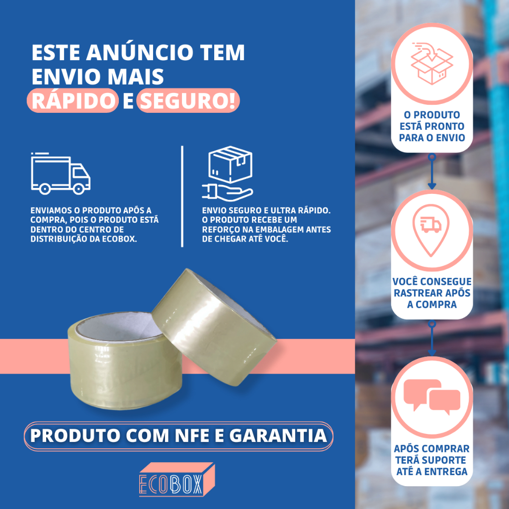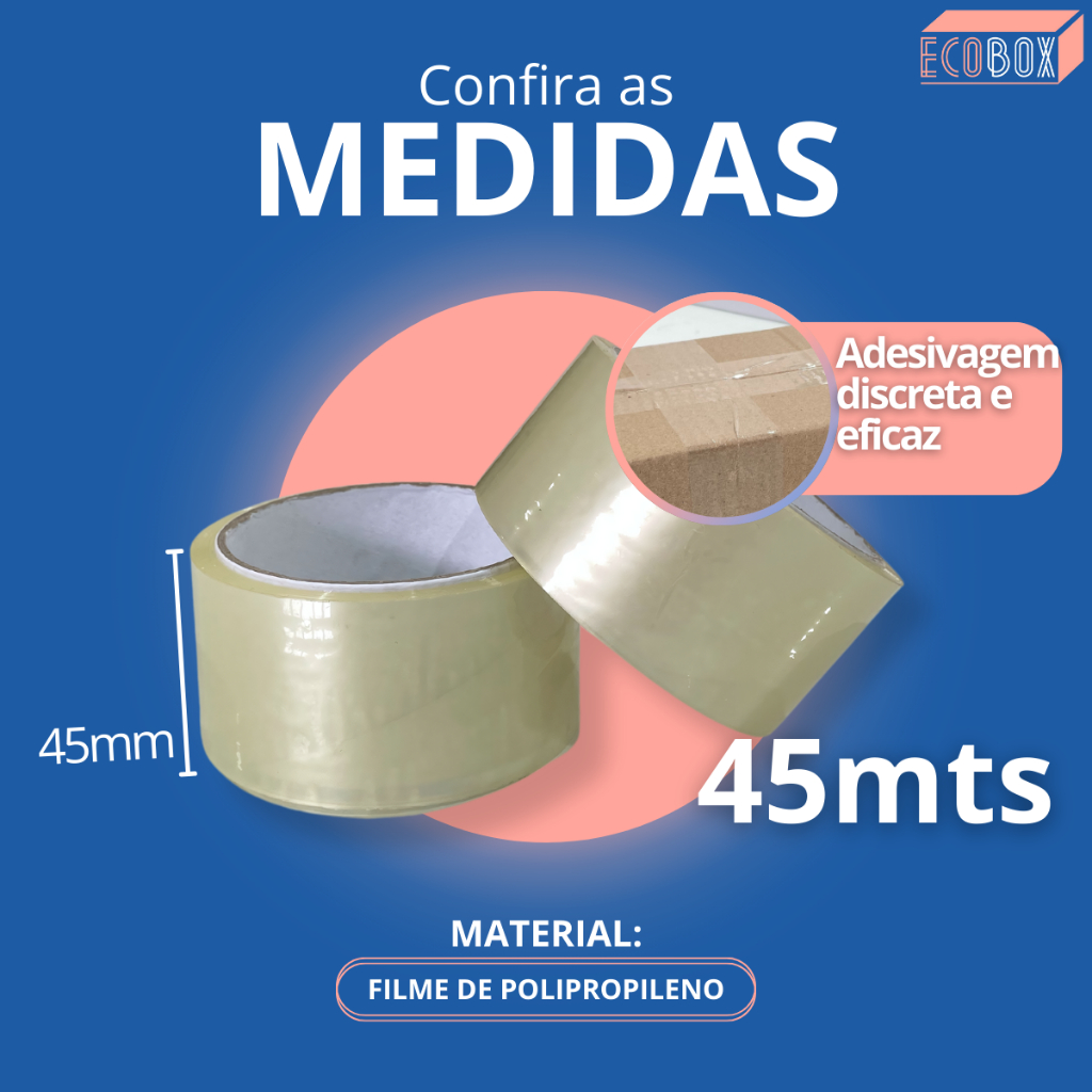 Fita Adesiva Larga 45mm x 45metros Transparente 1 Rolo Durex Para Caixas de Papelão
