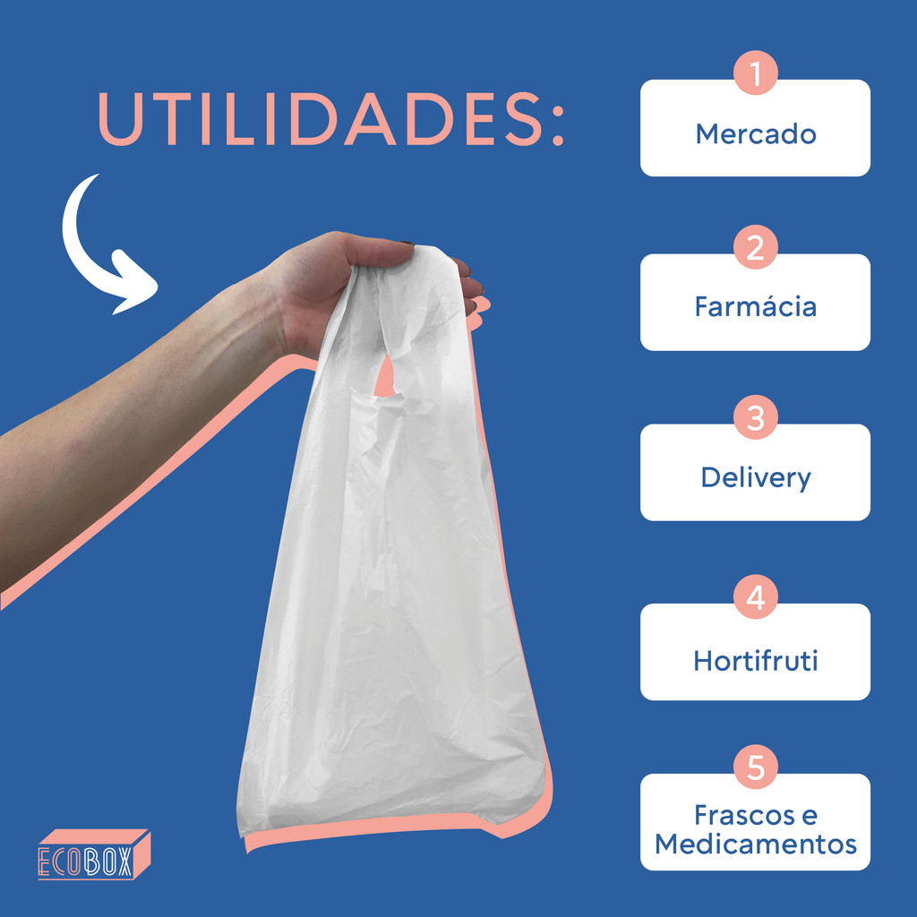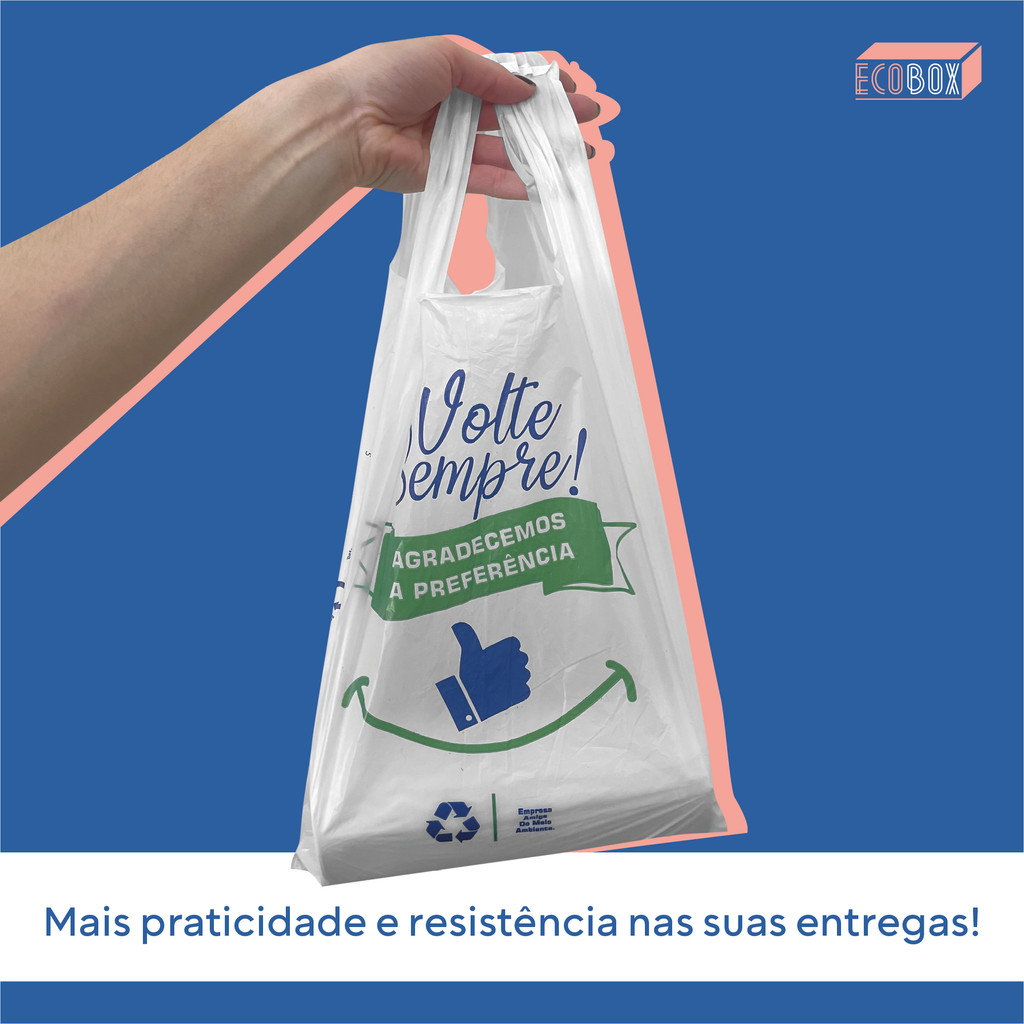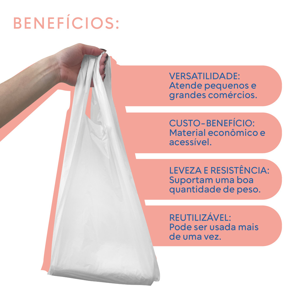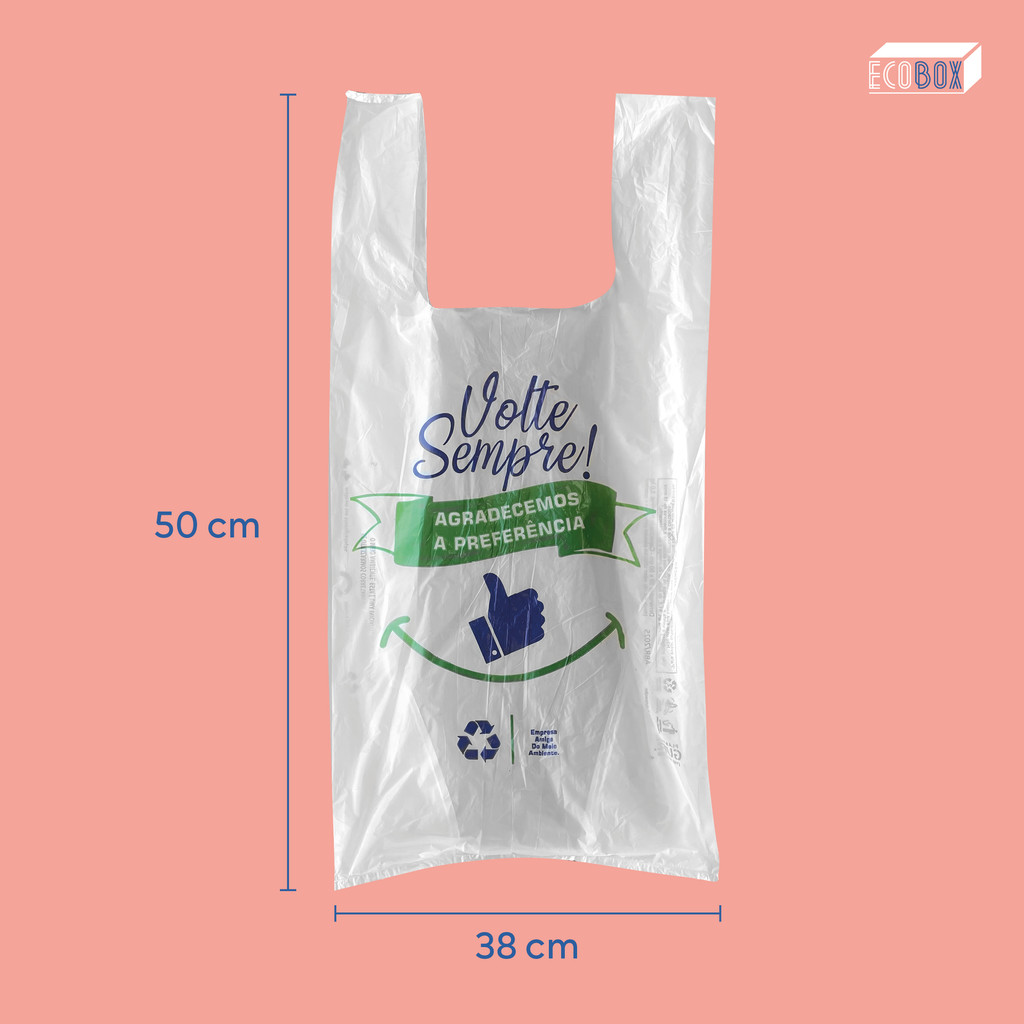 Sacola Plástica Reforçada Mercado Comércio Delivery Branca Lisa ou Volte Sempre