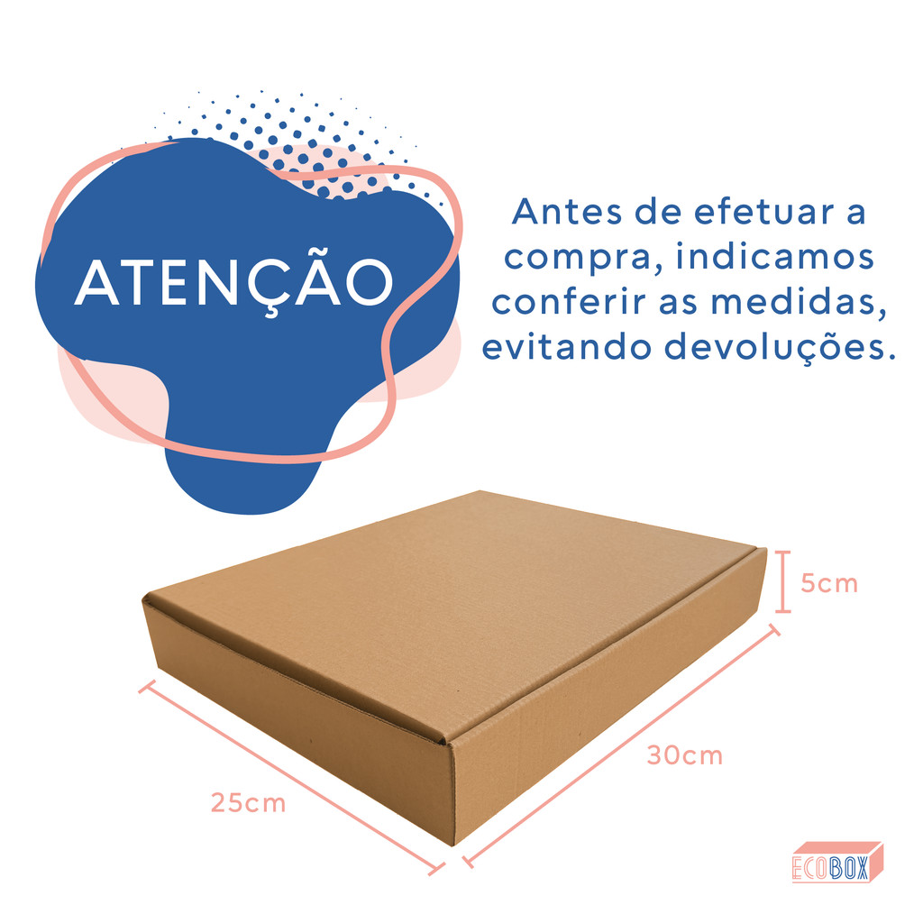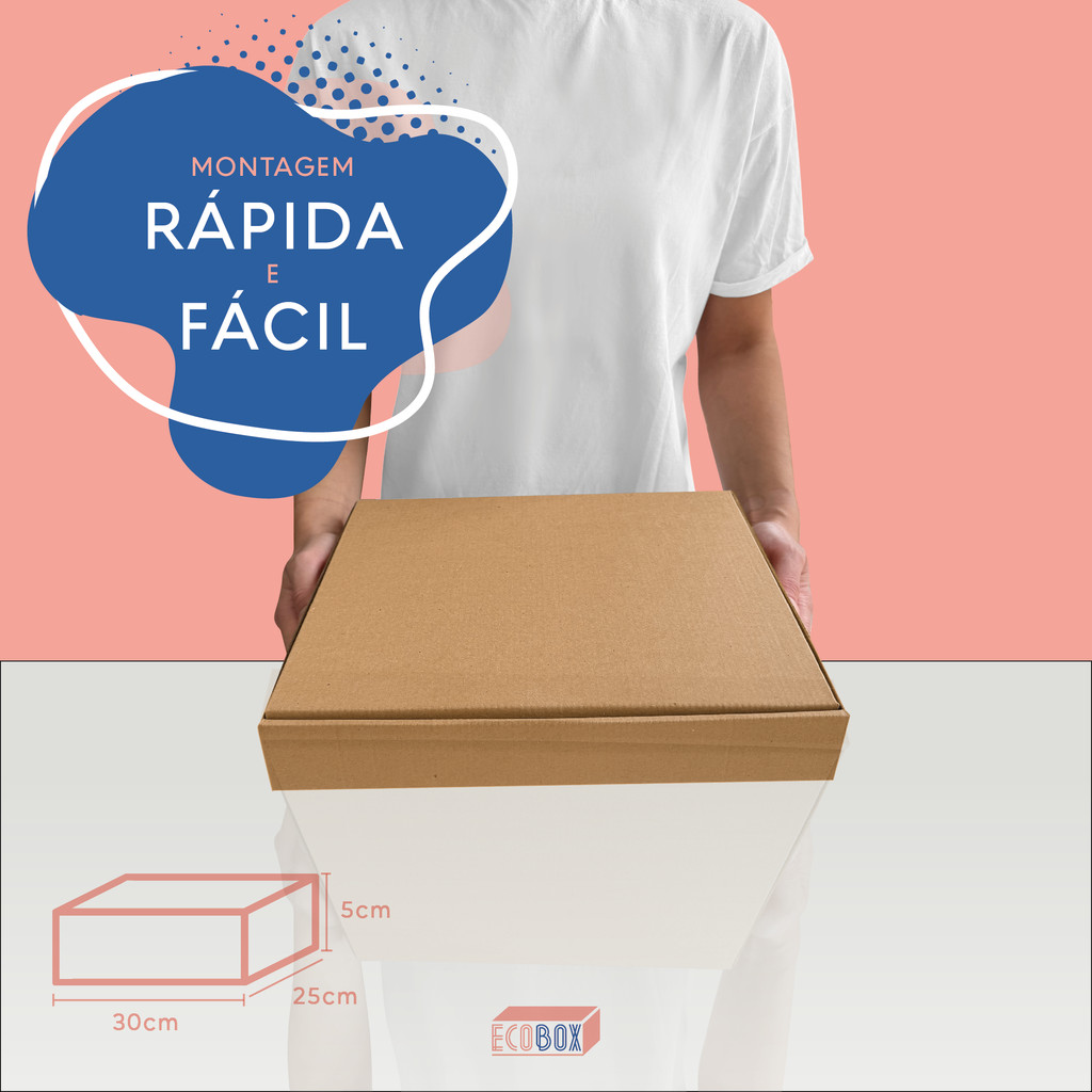 Kit Caixas de Papelão Parda 30x25x5cm Embalagem Para Salgadinhos Doces e Roupas
