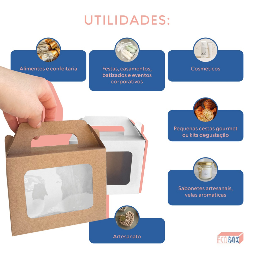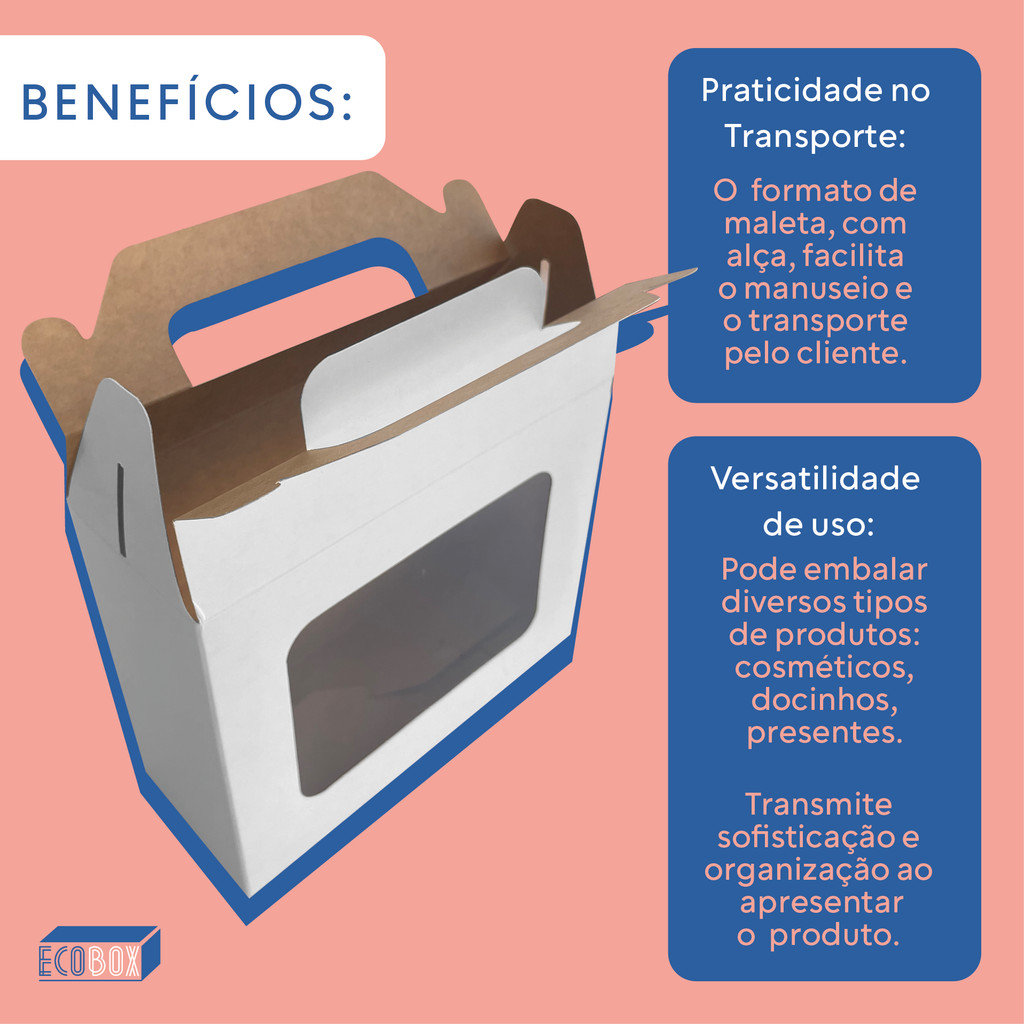 Kit Caixas De Presente Maleta 15x6x12cm Com Visor Para Festas Cosméticos Lembrancinha e Doces
