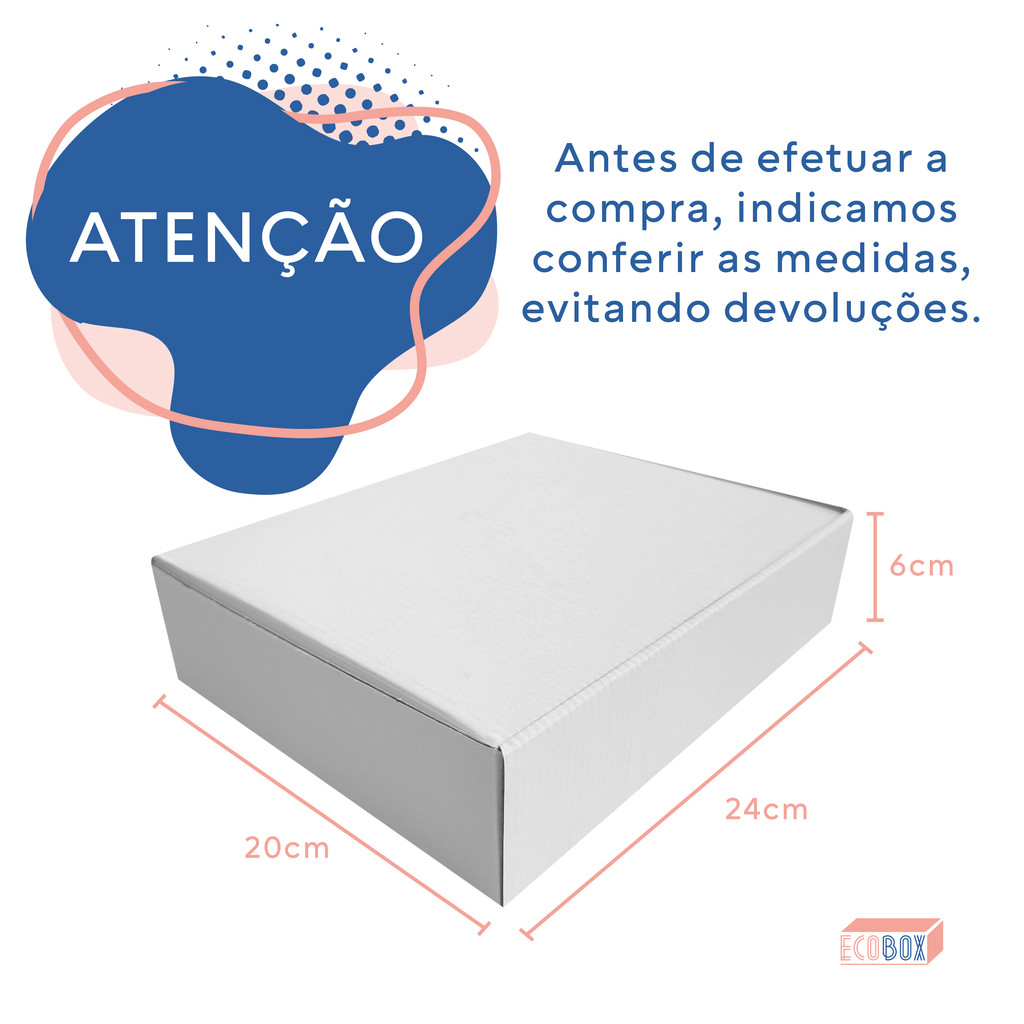 Kit Caixas de Papelão Branca 24x20x6cm E-Commerce Roupas Doces