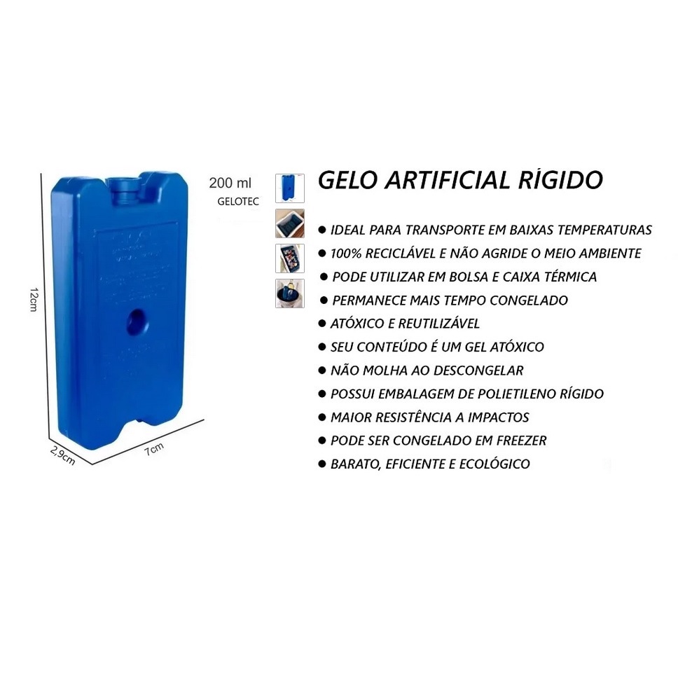 KIT 10 Gelox Placa Gelotech Gelo Reutilizável Rígido 200 ml