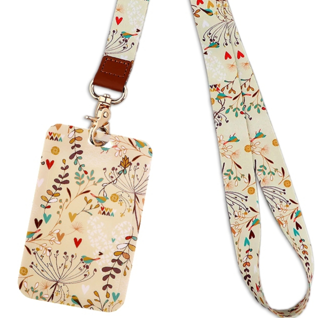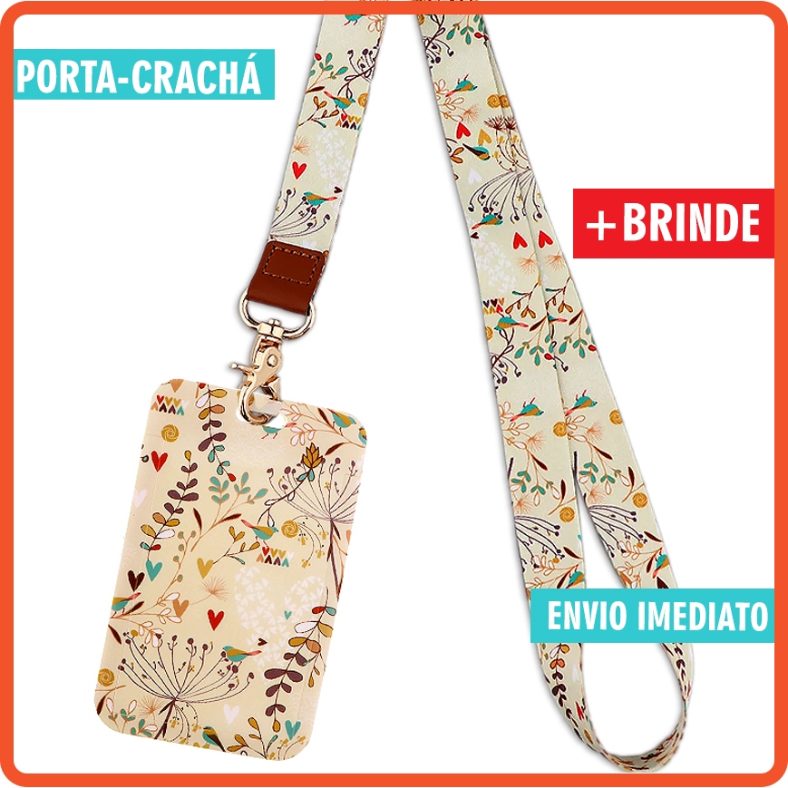 Porta Crachá Romântico Florido com Ponteira Dourada - Porta Cartão e Crachá