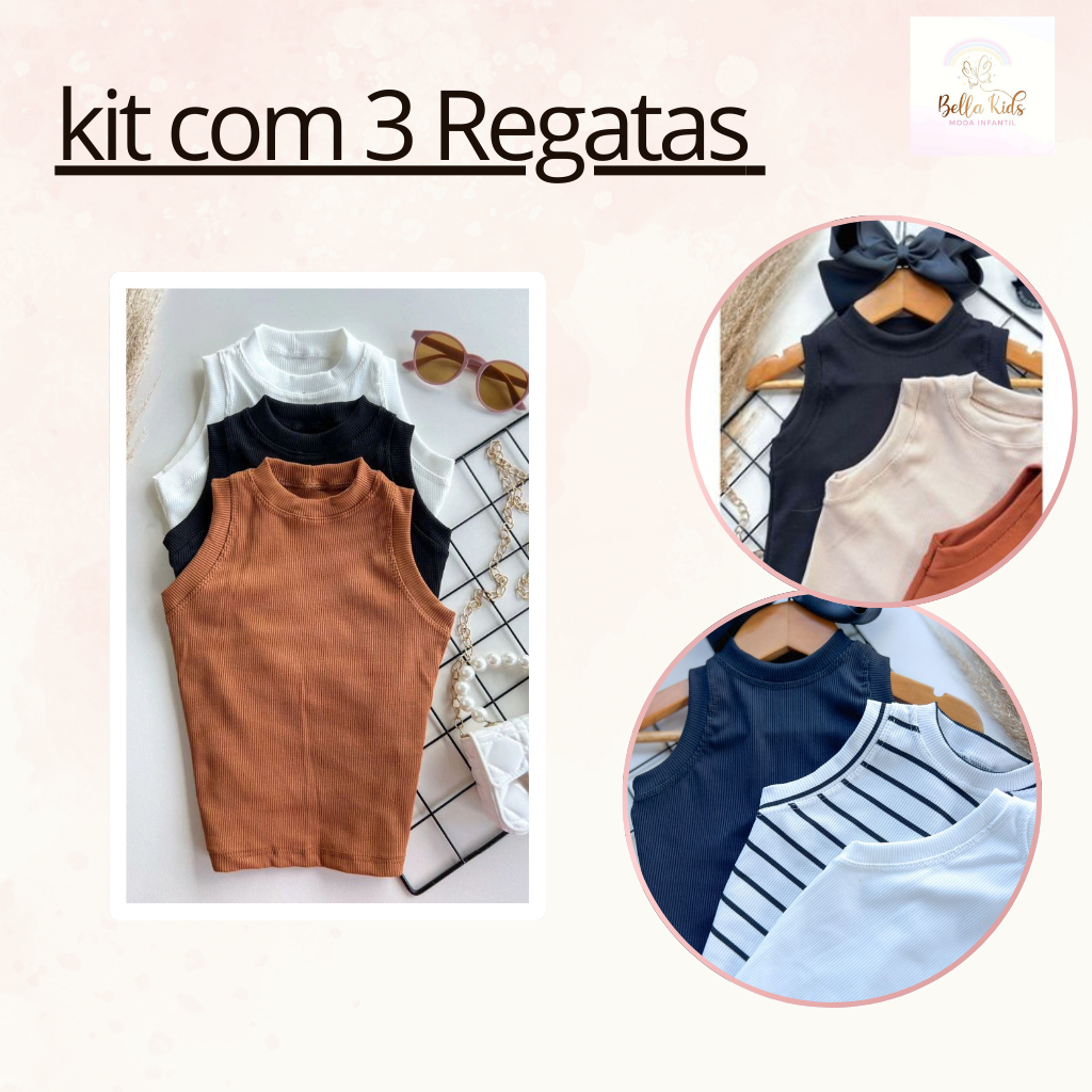 Kit 3 Blusa De Alcinha Regata Infantil 2 ao 12 Roupa de Meninas Regata Feminina