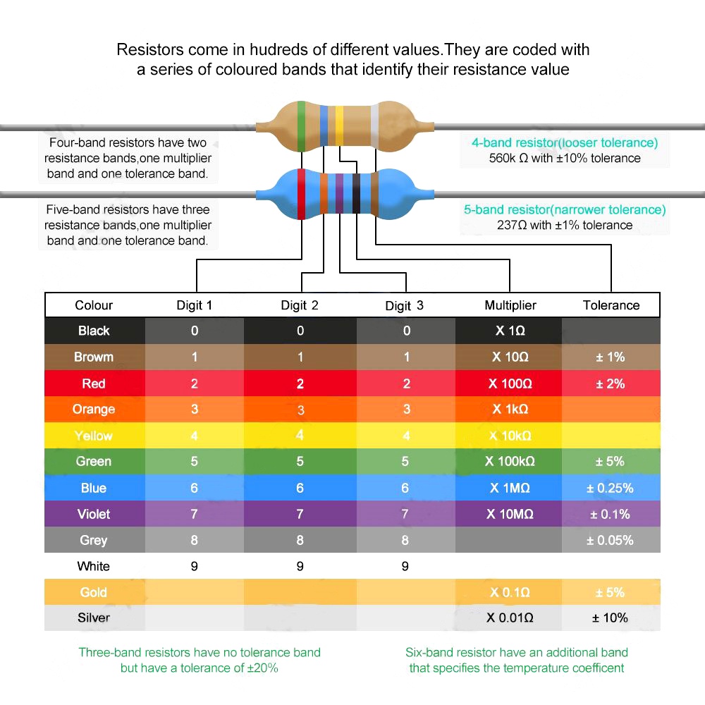 Kit 600 Resistores 1/4w 1% Precisão Reistência Resistor 30 Valores Diferentes 220r 1k 10k 100k 1m