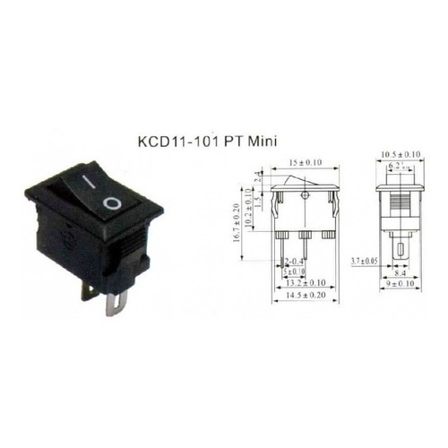 Mini Chave Gangorra KCD11-101 2T 3A/250V Preta 2 Posições
