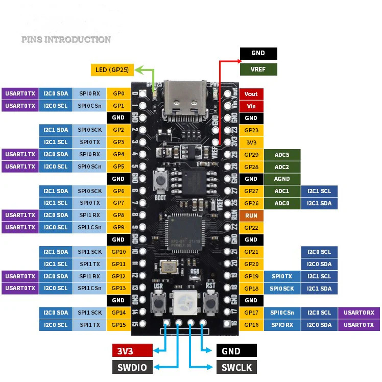 Raspberry Pi Pico 4M Usb-C RP2040 Pinos Dessoldados