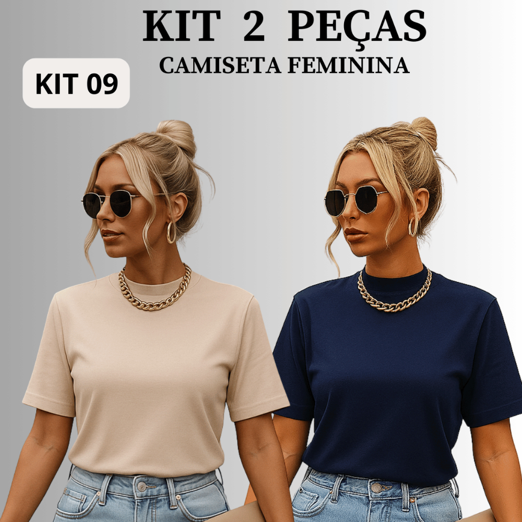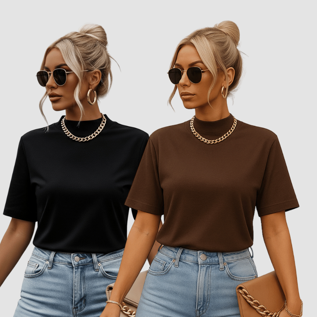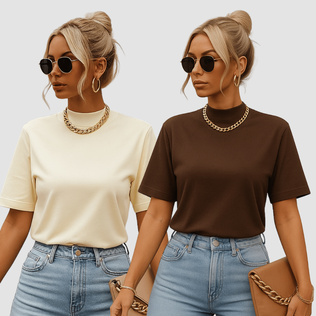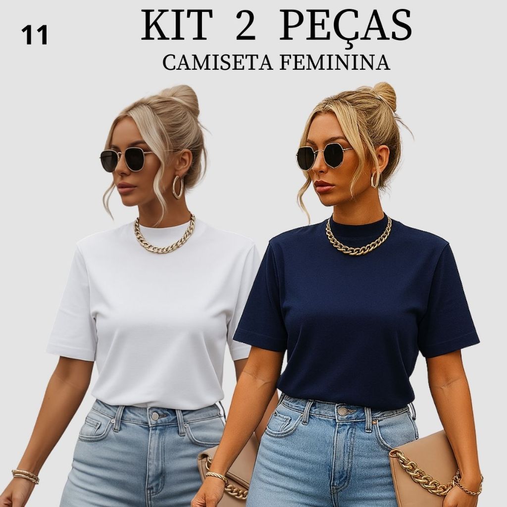 Kit 2 T-shirt Feminina Camiseta Gola Alta Simples 100% Algodão Premium T-shirt Marrom Choco Mousse Gola Ribana
