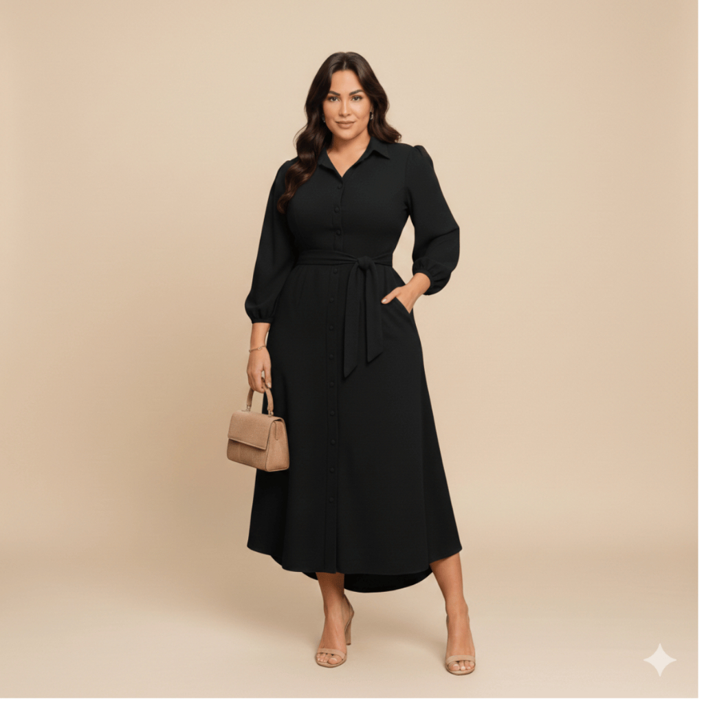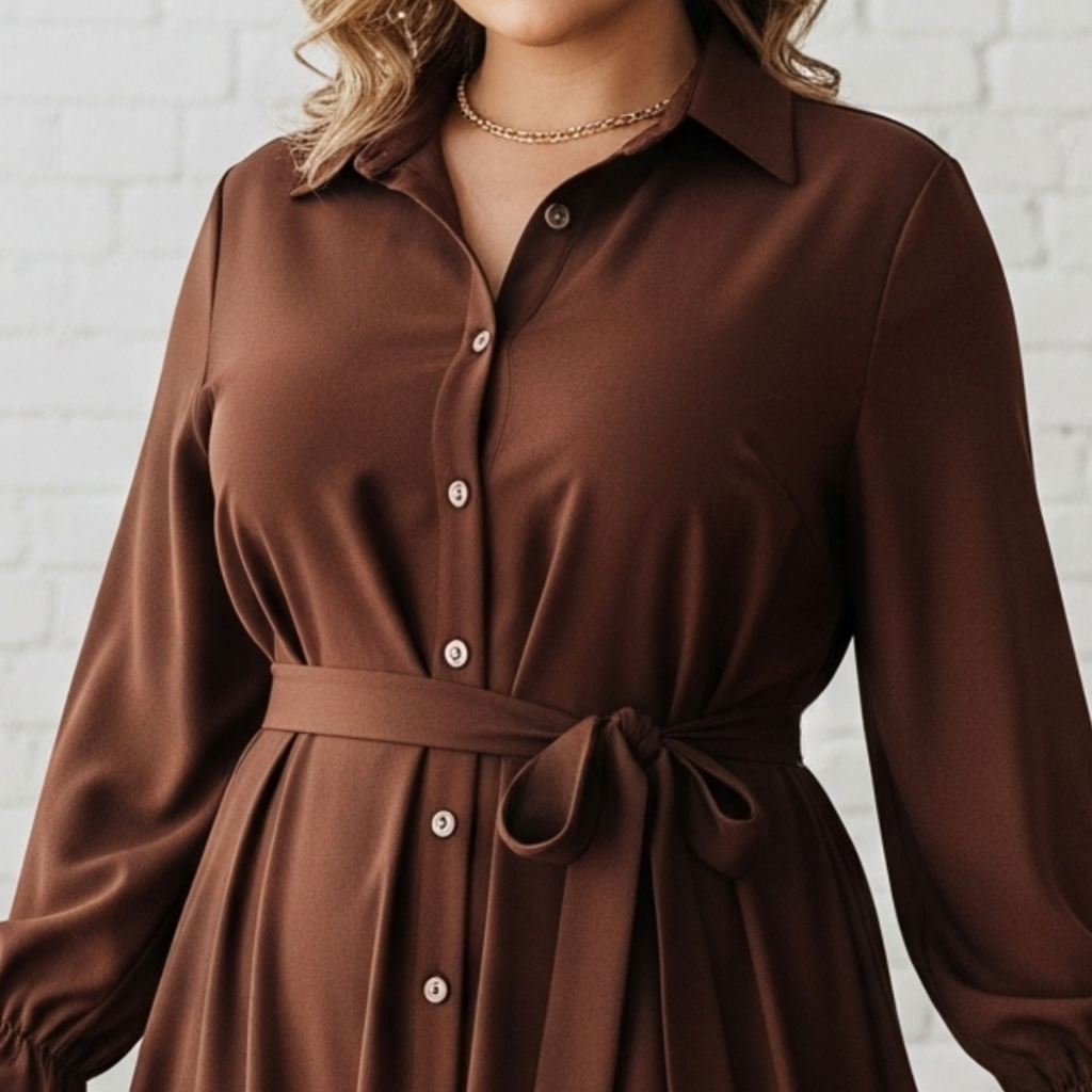 Vestido Feminino Longo Chemise Com Faixa Cintrura P ao G3 Plus Size Camisa Longa Gestante Mullet Botões Tecido Duna